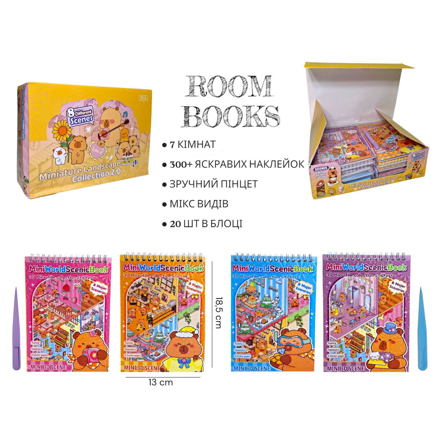 3D Румбокс-наліпки капібара, блокнот, 20шт в кор. /10/200/