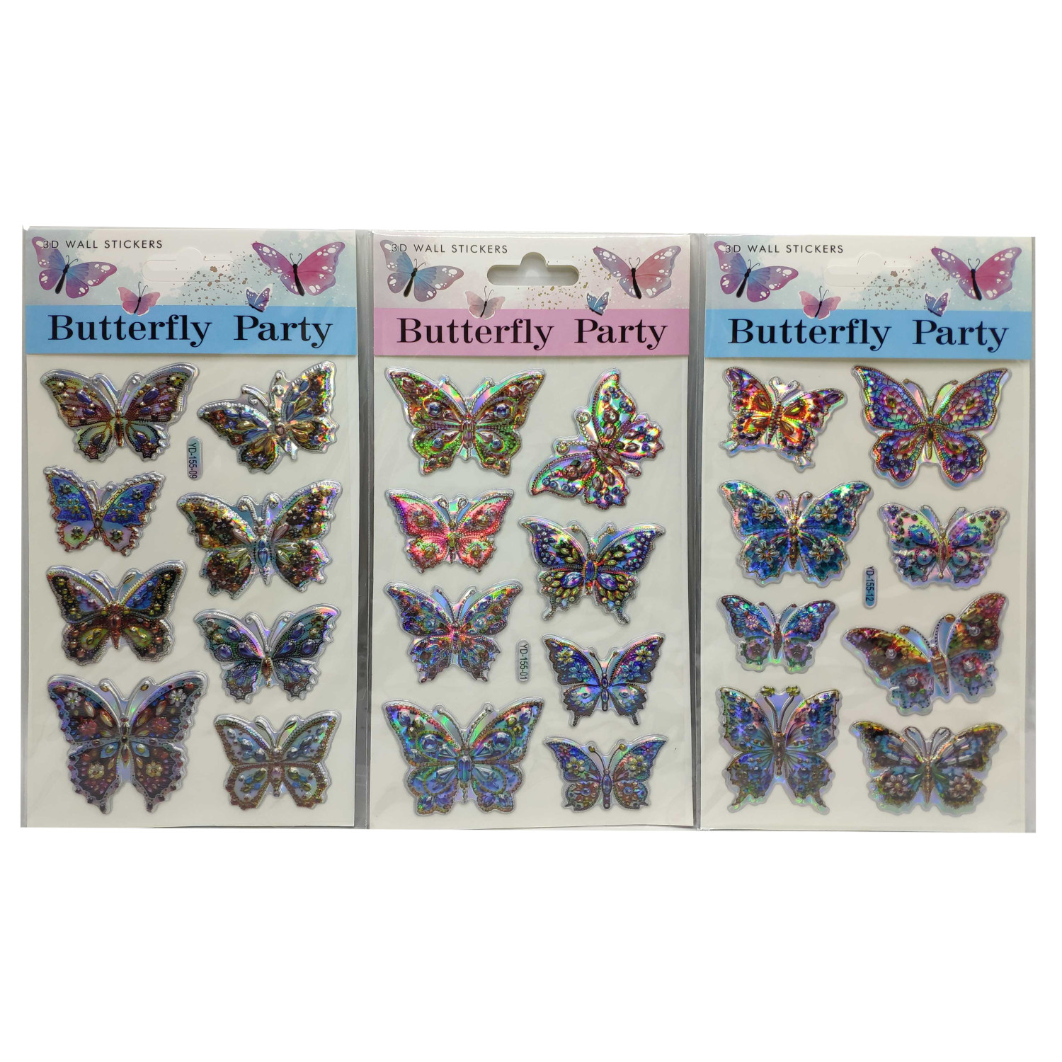 Наклейка об'ємна дута "Метелики голографічнi" 24*12см 12в. (100*12), ціна за 4 шт. //