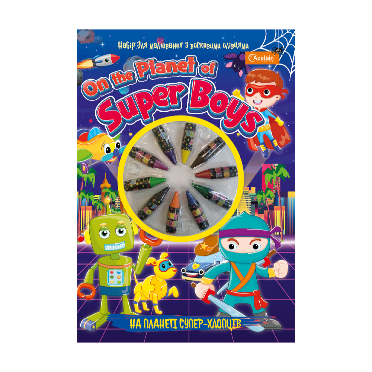 Набір для малювання з восковими олівцями "On the Planet of Super Boys"