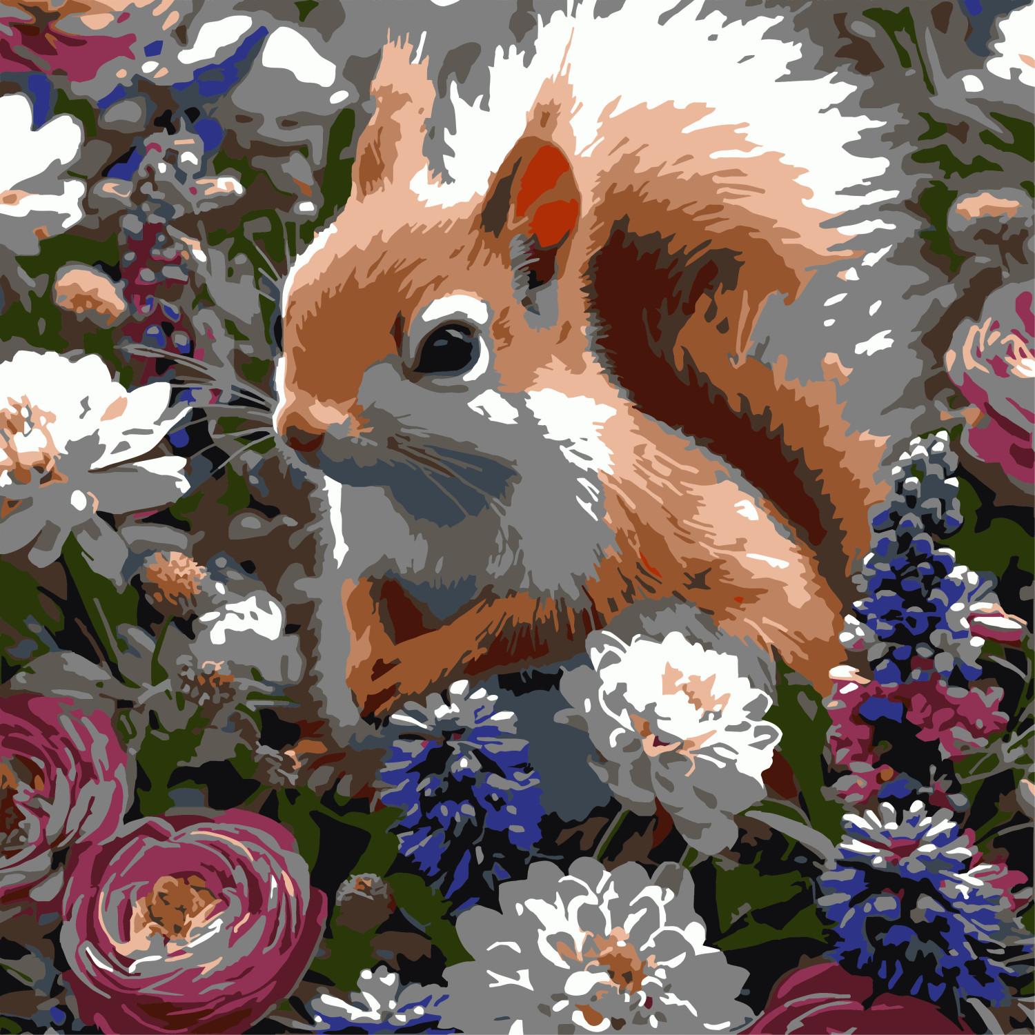 Картина за номерами Strateg Білка серед квітів  30х30 (ES-0912)