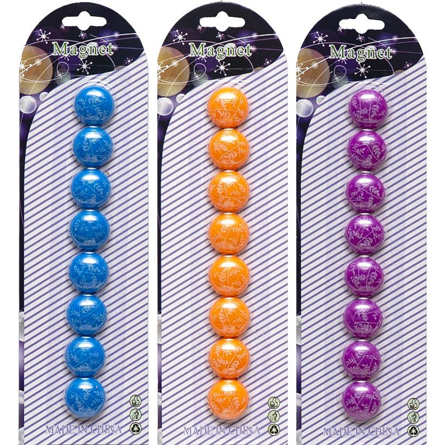 Магніти для дошки. Діаметр магніта: 2 см. На блістері 8 штук. Розмір упаковки 22*6,5 см.