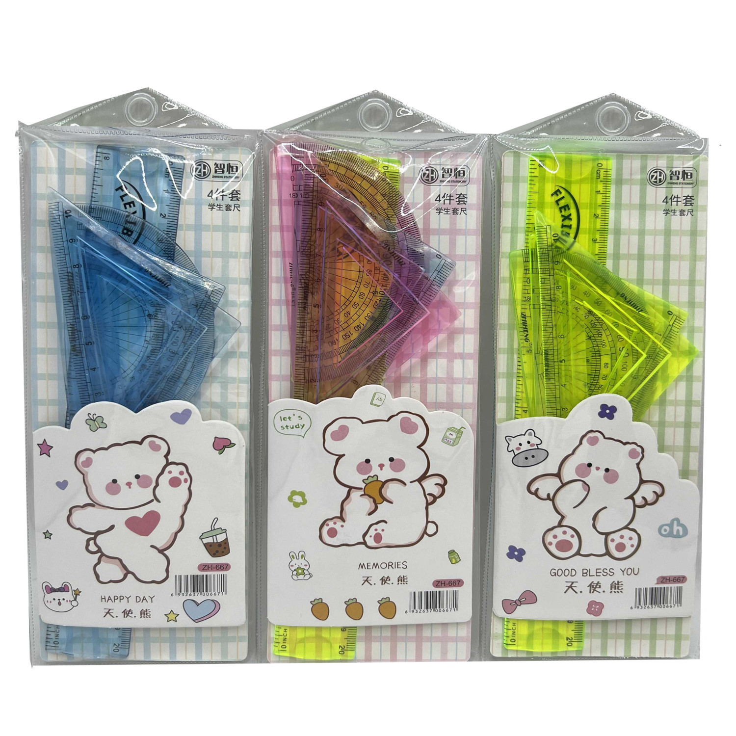 Н-р лінійок 4 шт.Flex неломайка (лін.- 20см,трикут-к-2шт.,транс-р) "Білий ведмідь" в конв.ПВХ (16*30)