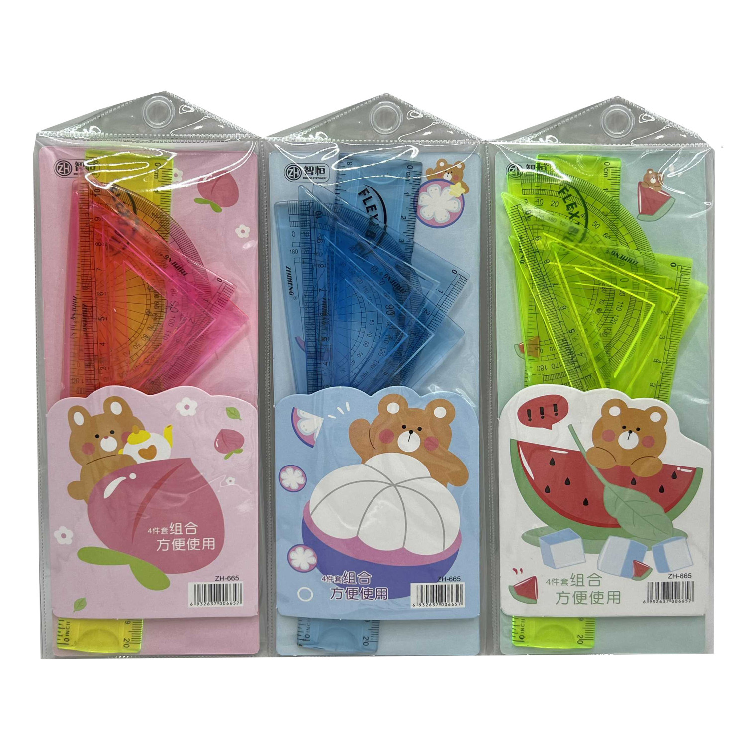 Н-р лінійок 4 шт.Flex неломайка (лін.- 20см,трикут-к-2шт.,транс-р) "Ведмедик з фруктами" в конв.ПВХ (16*30)