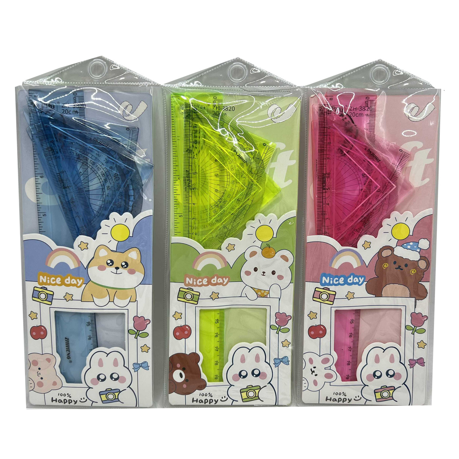 Н-р лінійок 4 шт.Flex неломайка (лін.- 20см,трикут-к-2шт.,транс-р) "Ведмедик з фруктами" в конв.ПВХ (16*30)