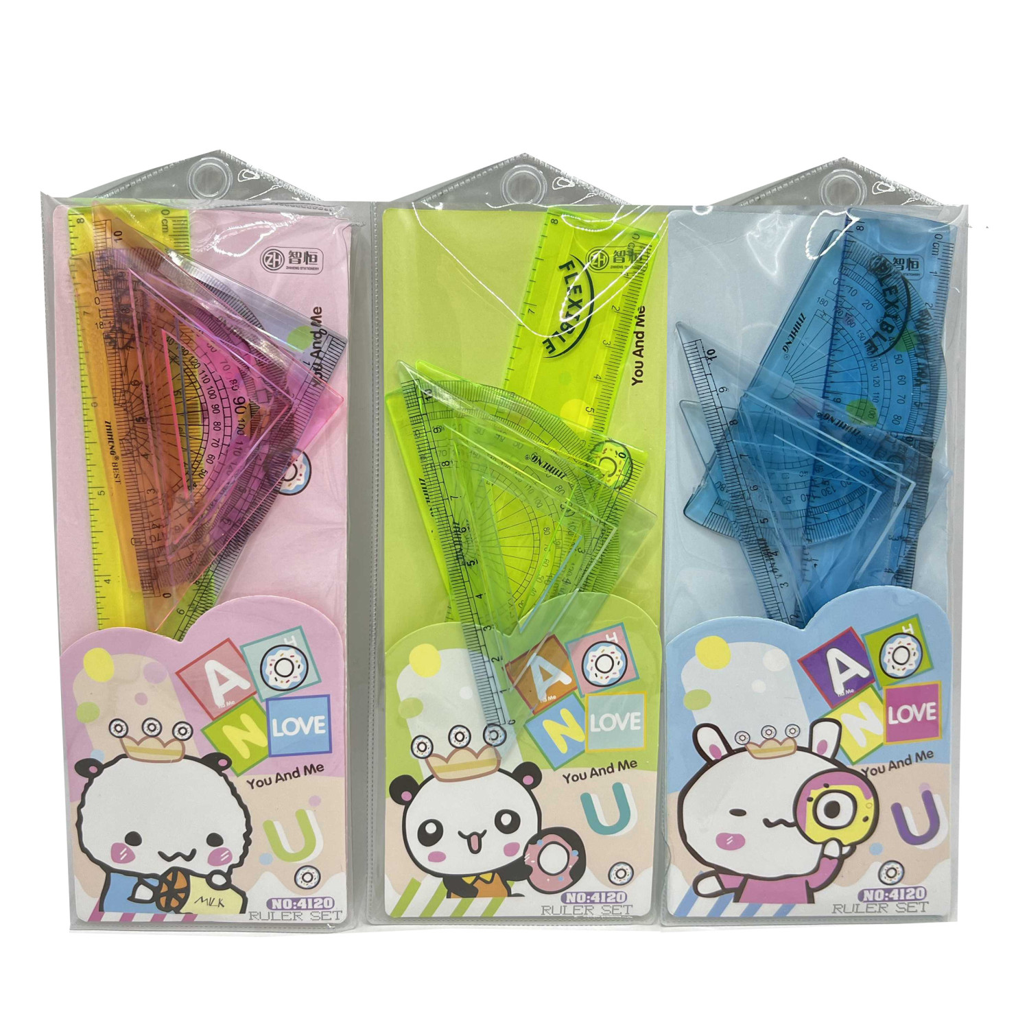 Н-р лінійок 4 шт.Flex неломайка (лін.- 20см,трикут-к-2шт.,транс-р)"Звірята в короні" в конв.ПВХ (16*30)