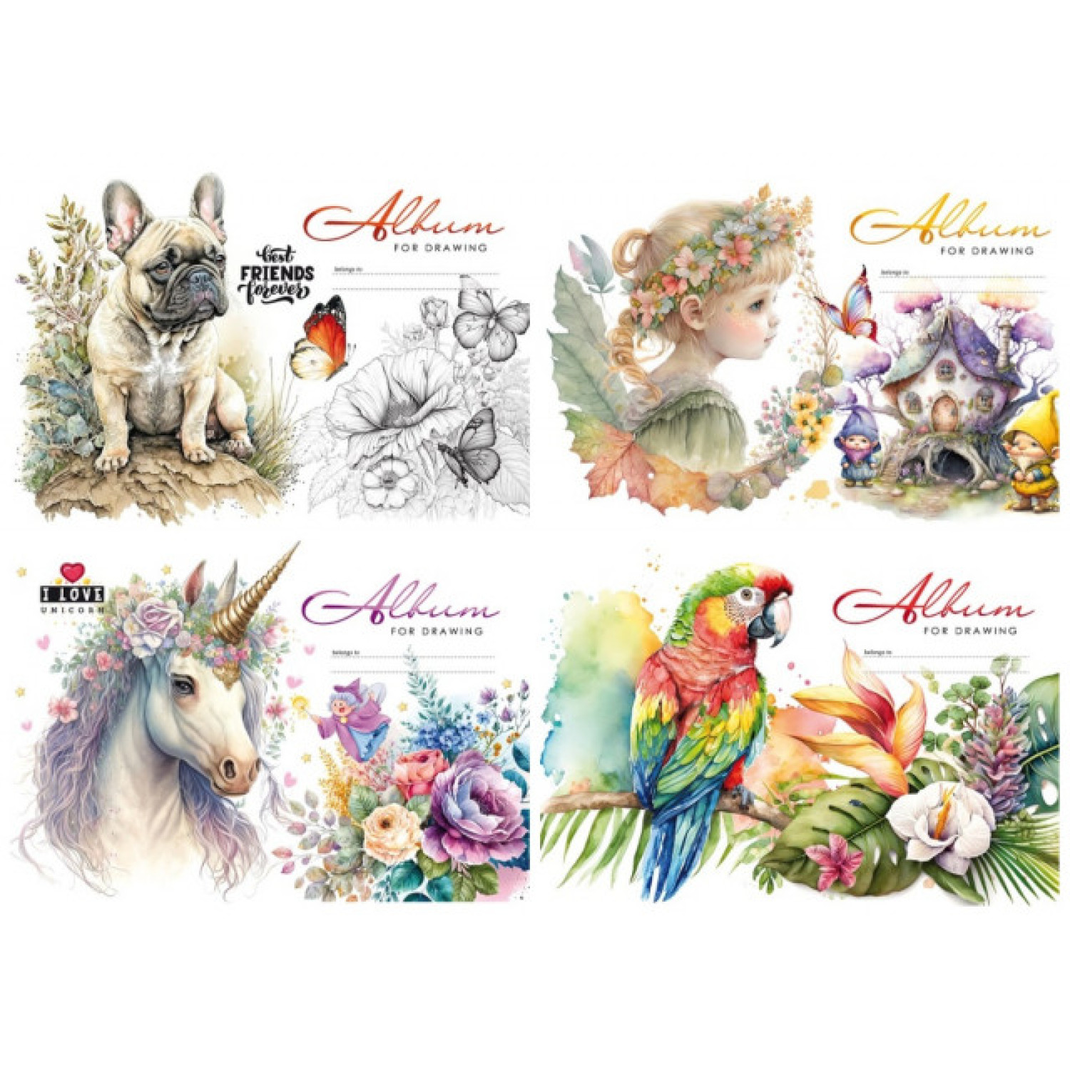Альбом для малювання, 100г, на скобі, 202х292 мм, 12 аркушів. диз.23037-23040