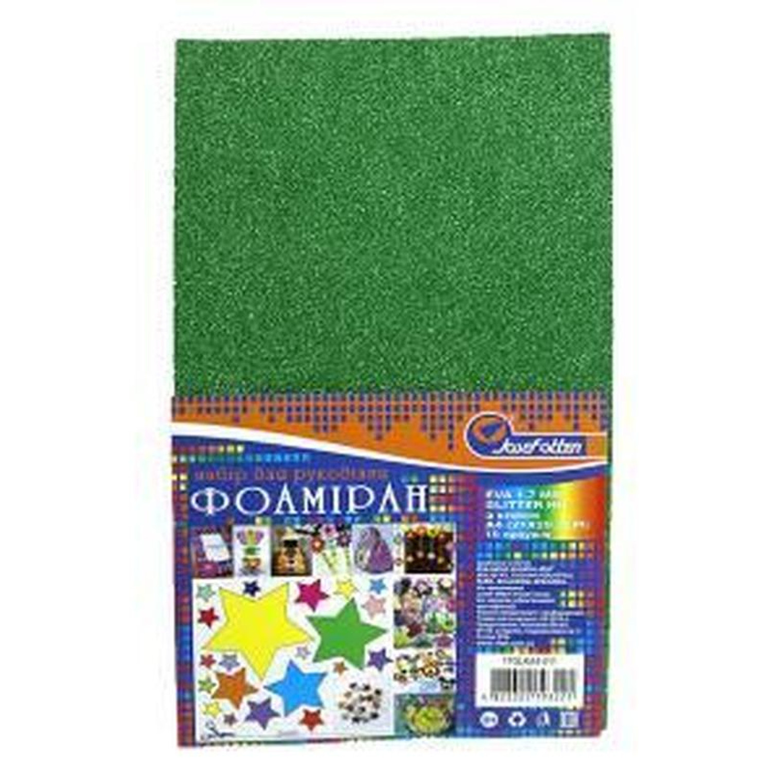 Фоамиран EVA 1.7±0.1MM "Ярко-зеленый" GLITTER HQ A4 (21X29.7CM) с клеем