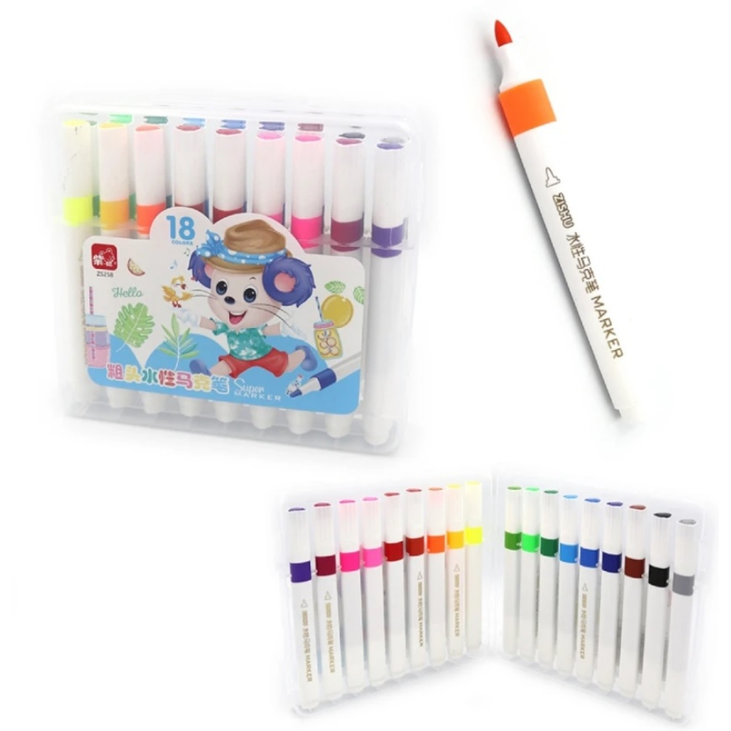 Набір фломастерів трикутн. корп. 125мм "Mouse" 18шт., plastic box