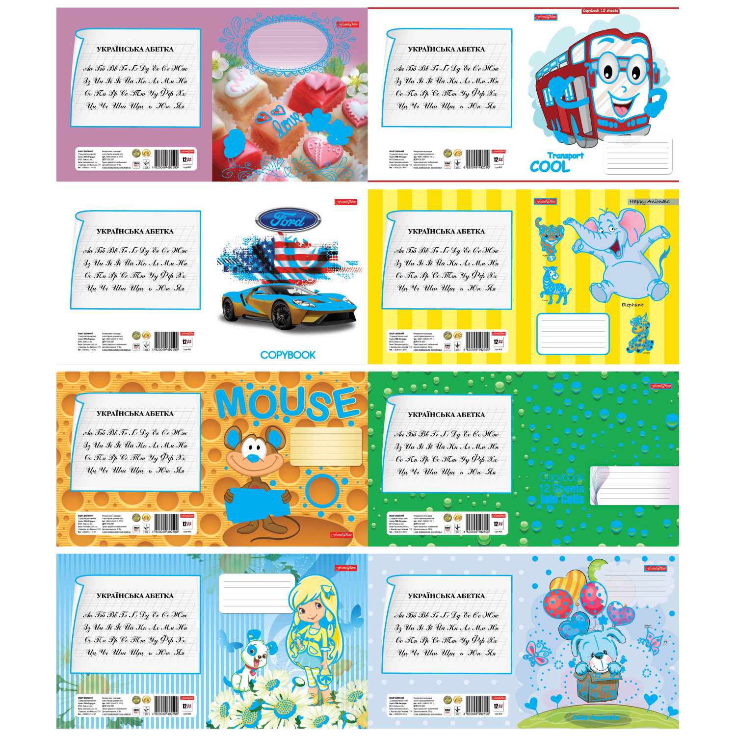 Тетрадь в косую линию 12 листов, 25 шт. в комплекте. Внутренний блок: офсетная бумага, плотность - 60 г/м2, белизна - 100%, красные поля. Обложка: картонная, полноцветная, с глиттерным покрытием, плотность - 190-200 г/м2.