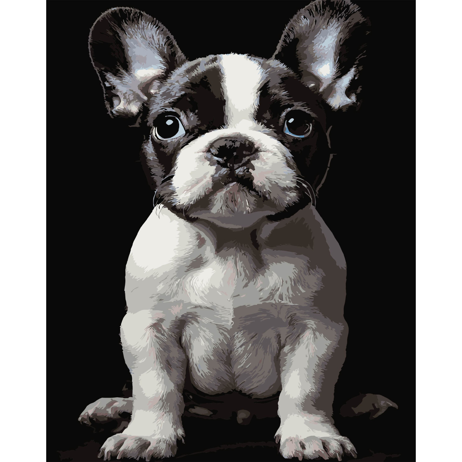Картина за номерами Strateg Маленький пес на чорному фоні 40Х50 (AH1277)