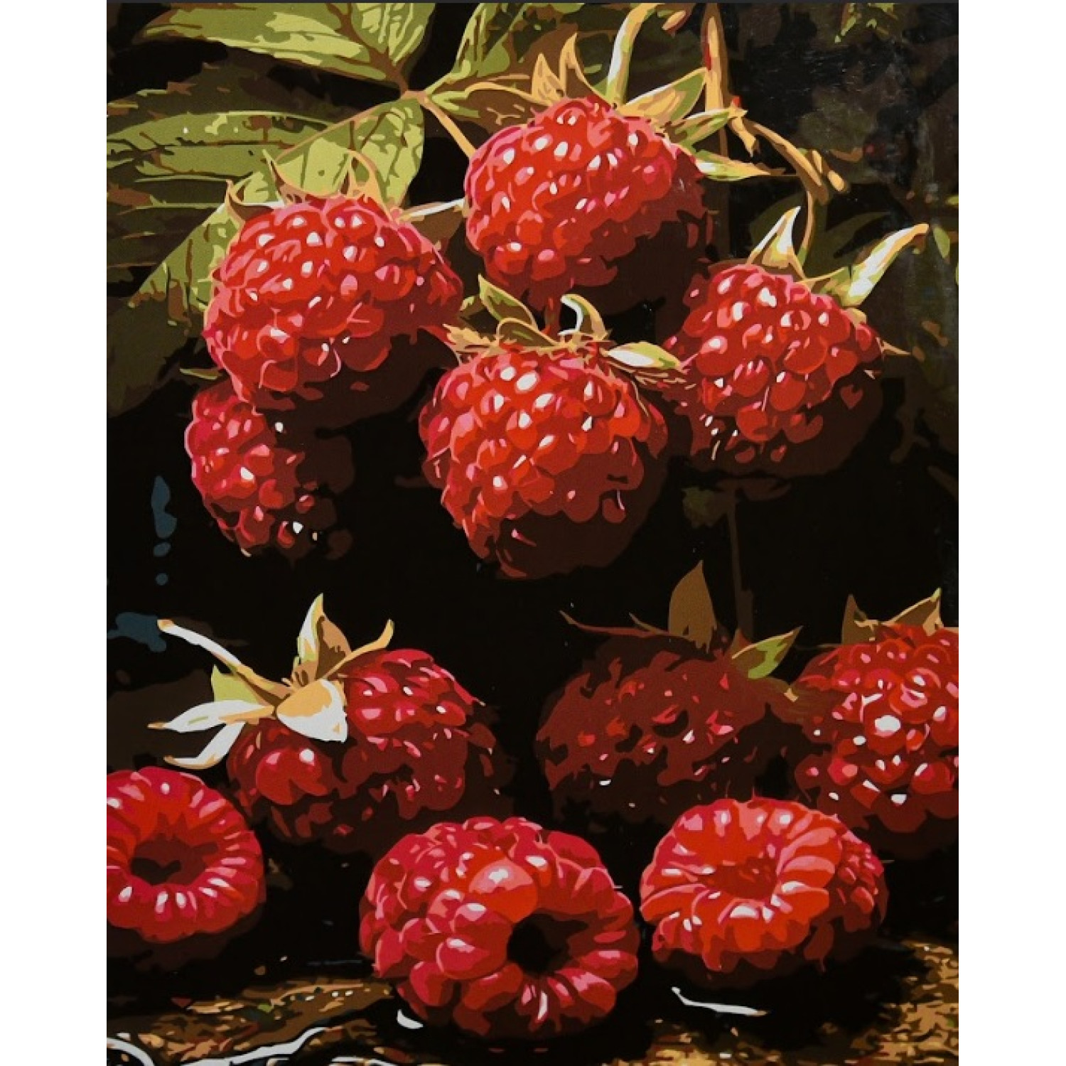 Картина за номерами Strateg Соковита малина на чорному фоні 40х50 (AH1313)