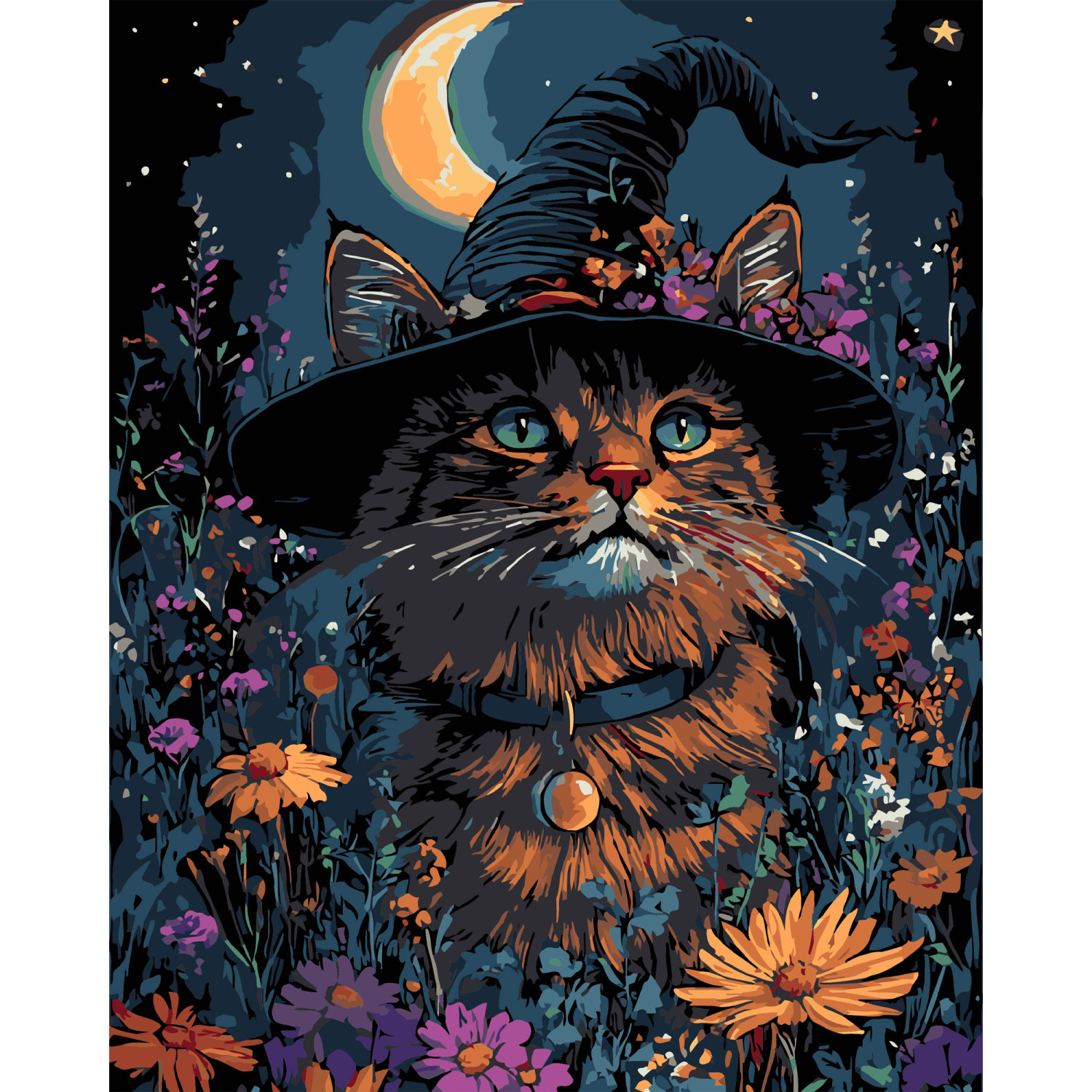 Набір для розпису по номерах Геллоуїнський кіт Strateg на чорному фоні розміром 40х50 см (AH1193-17)