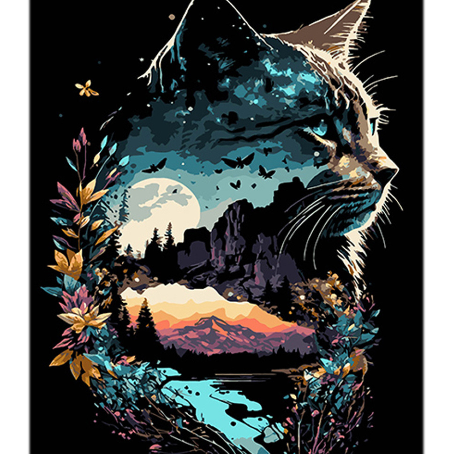 Набір для розпису по номерах Котяче відображення природи Strateg на чорному фоні розміром 40х50 см (AH1129)
