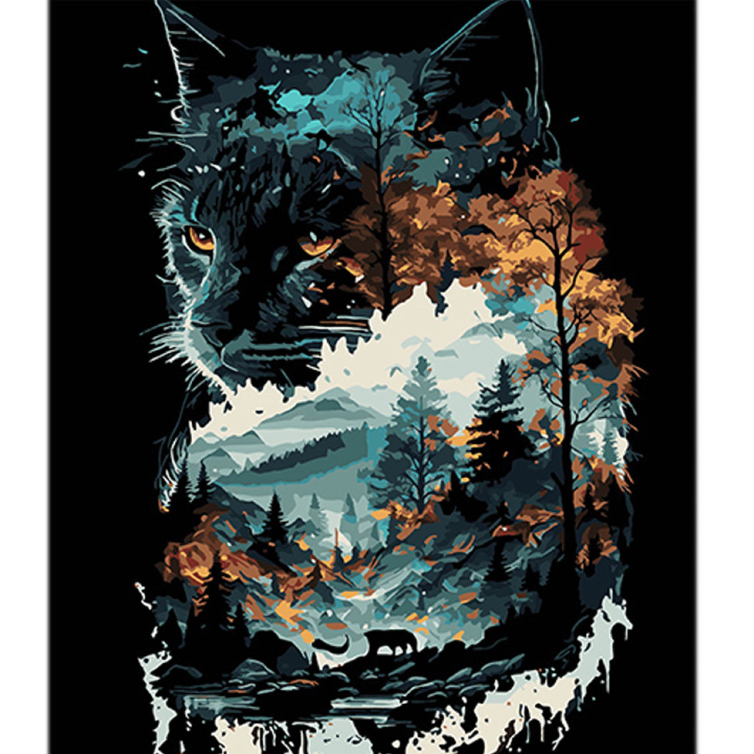 Набір для розпису по номерах Кішка в подвійній експозиції Strateg на чорному фоні розміром 40х50 см (AH1128)