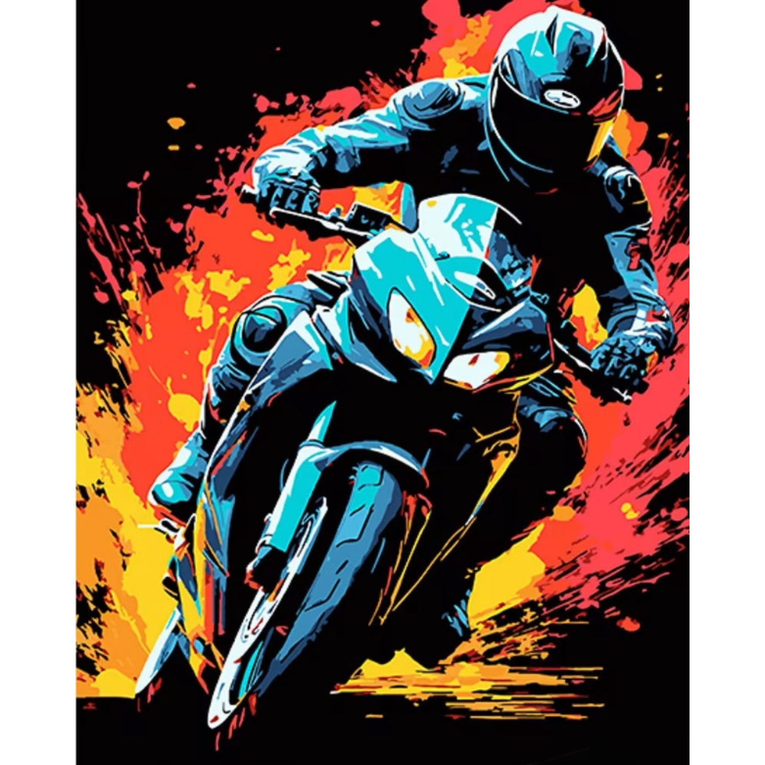 Набір для розпису по номерах Мотоцикліст на байку Strateg на чорному фоні розміром 40х50 см (AH1069)