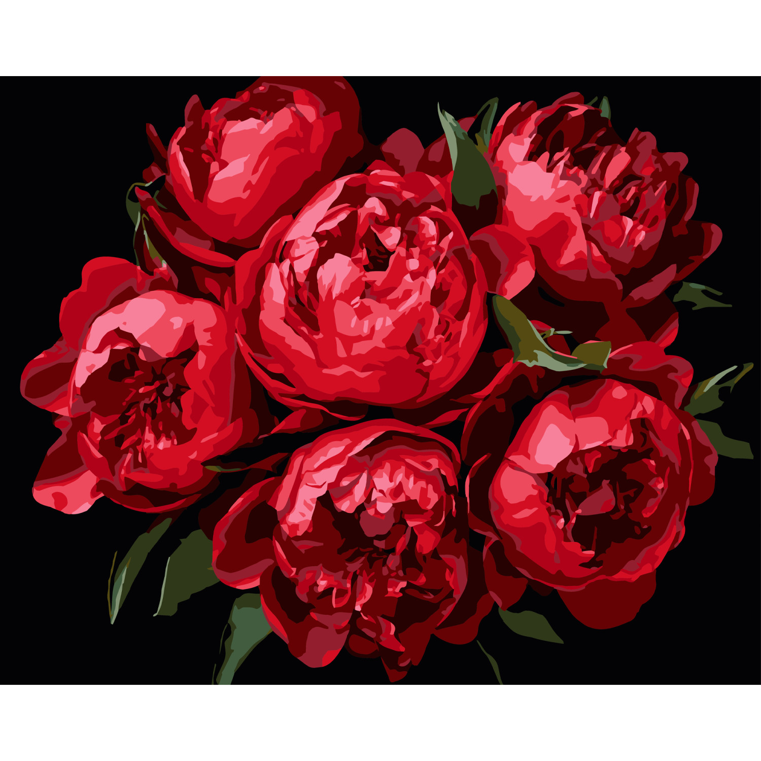 Набір для розпису по номерах Яскраві півонії Strateg на чорному фоні розміром 40х50 см (AH1215-11)