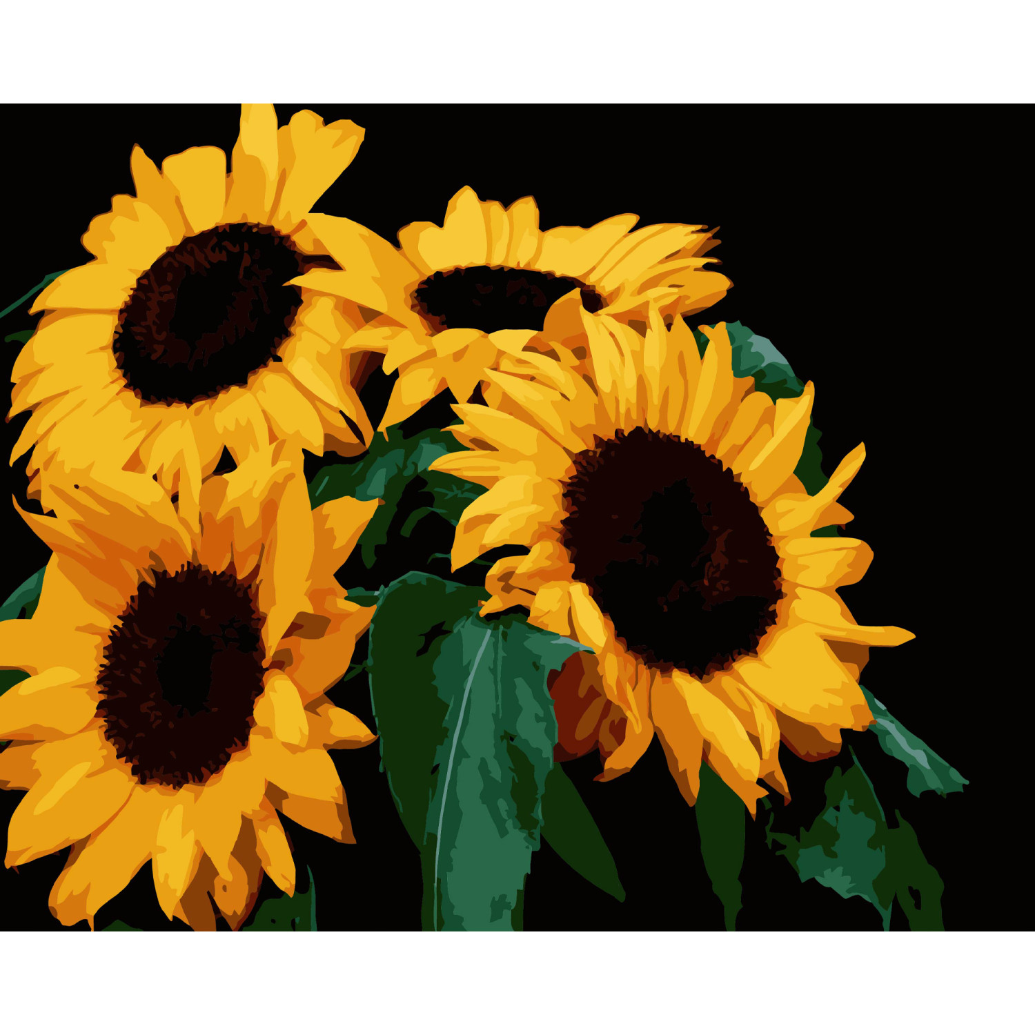Набір для розпису по номерах Яскраві соняхи Strateg на чорному фоні розміром 40х50 см (AH1185-13)