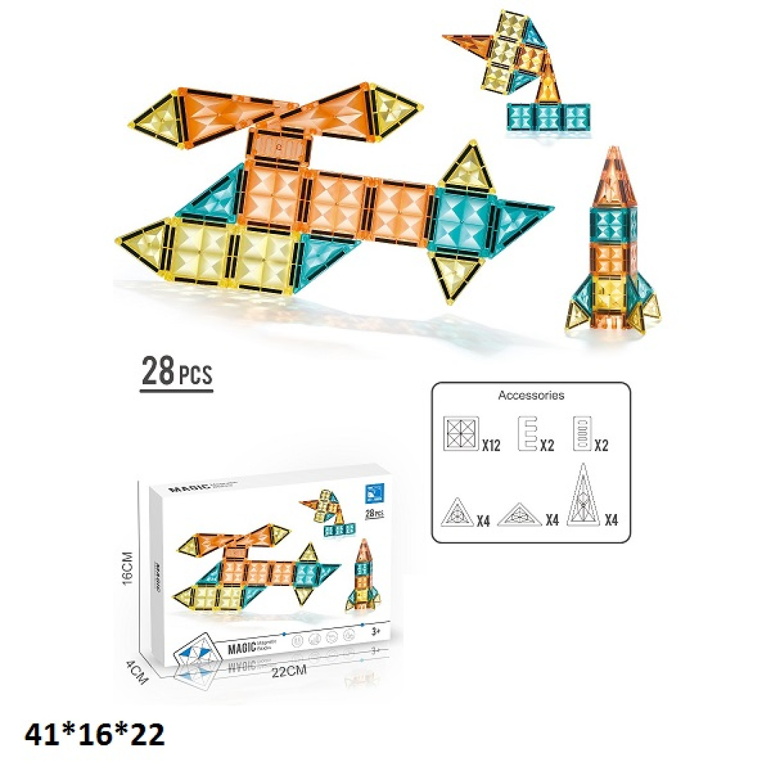 Конструктор магнітний DIAMOND SURFACE CJ-2001A 28дет.кор.41*16*22 /72/