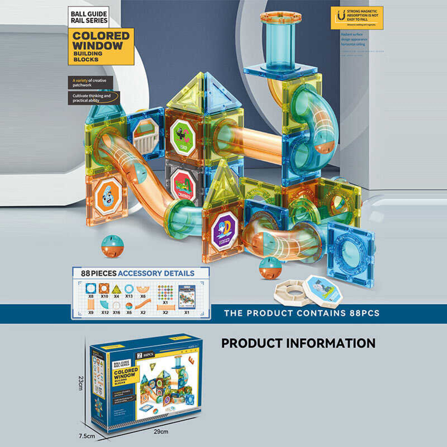 Магнітний конструктор 88 деталей, в кор. 30*23*8см /24/