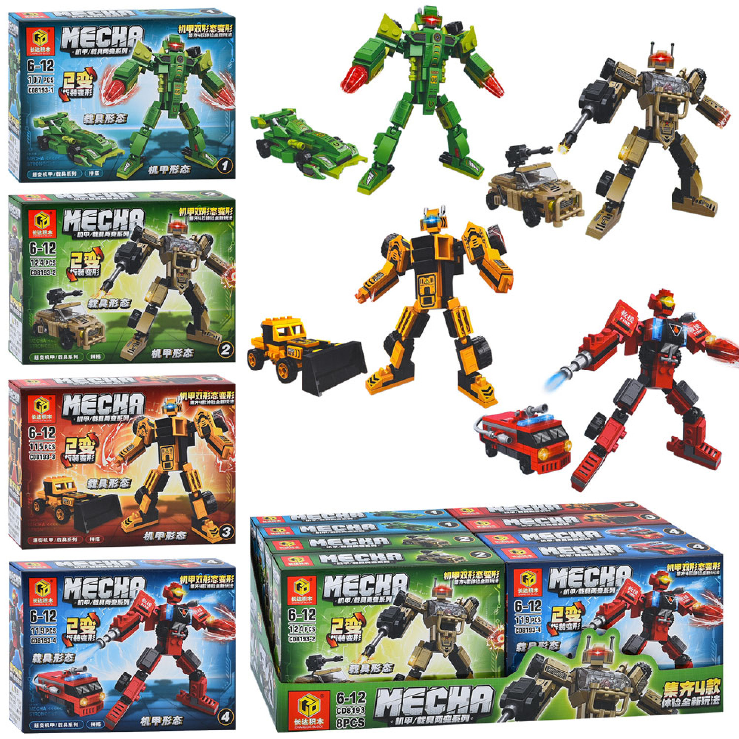 Конструктор 2в1(робот, транспорт), від 107дет, в кор-ці, (4види) /15/120/8шт в кор.38,5-14,5-7см