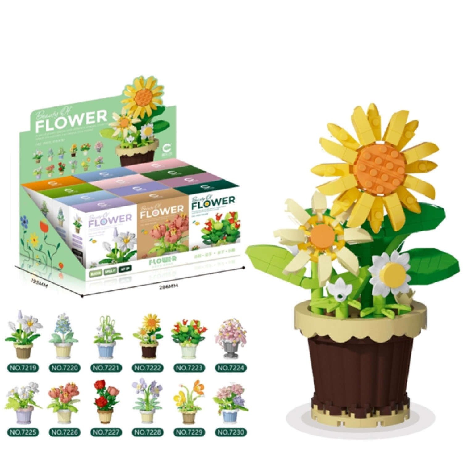 Конструктор квіти у горшику, від 105дет, в кор-ці, (12 видів) /12/144/12шт в кор. 28,5-12,5-19,5см