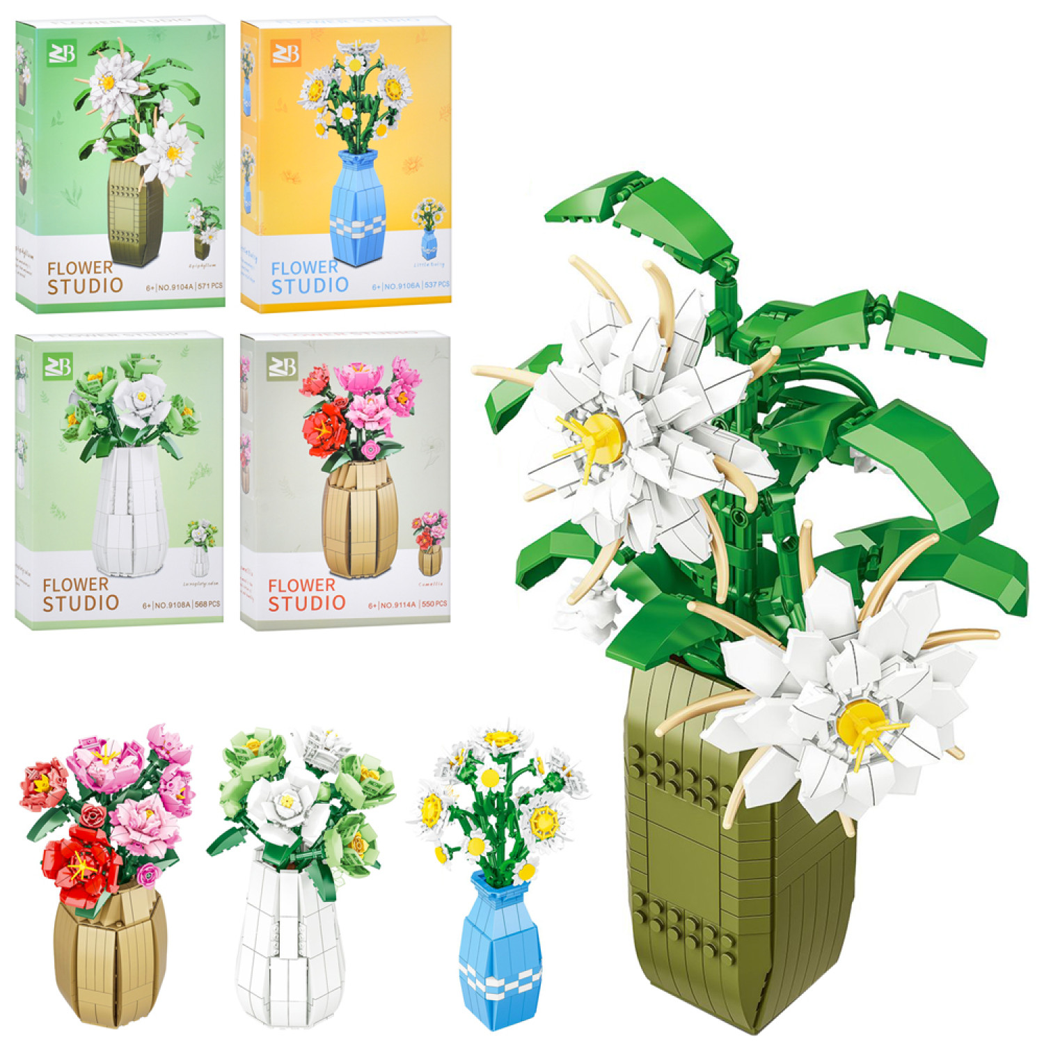 Конструктор квіти, ваза, от 537дет, 4 види, в кор-ці, 26-37-7см /24/