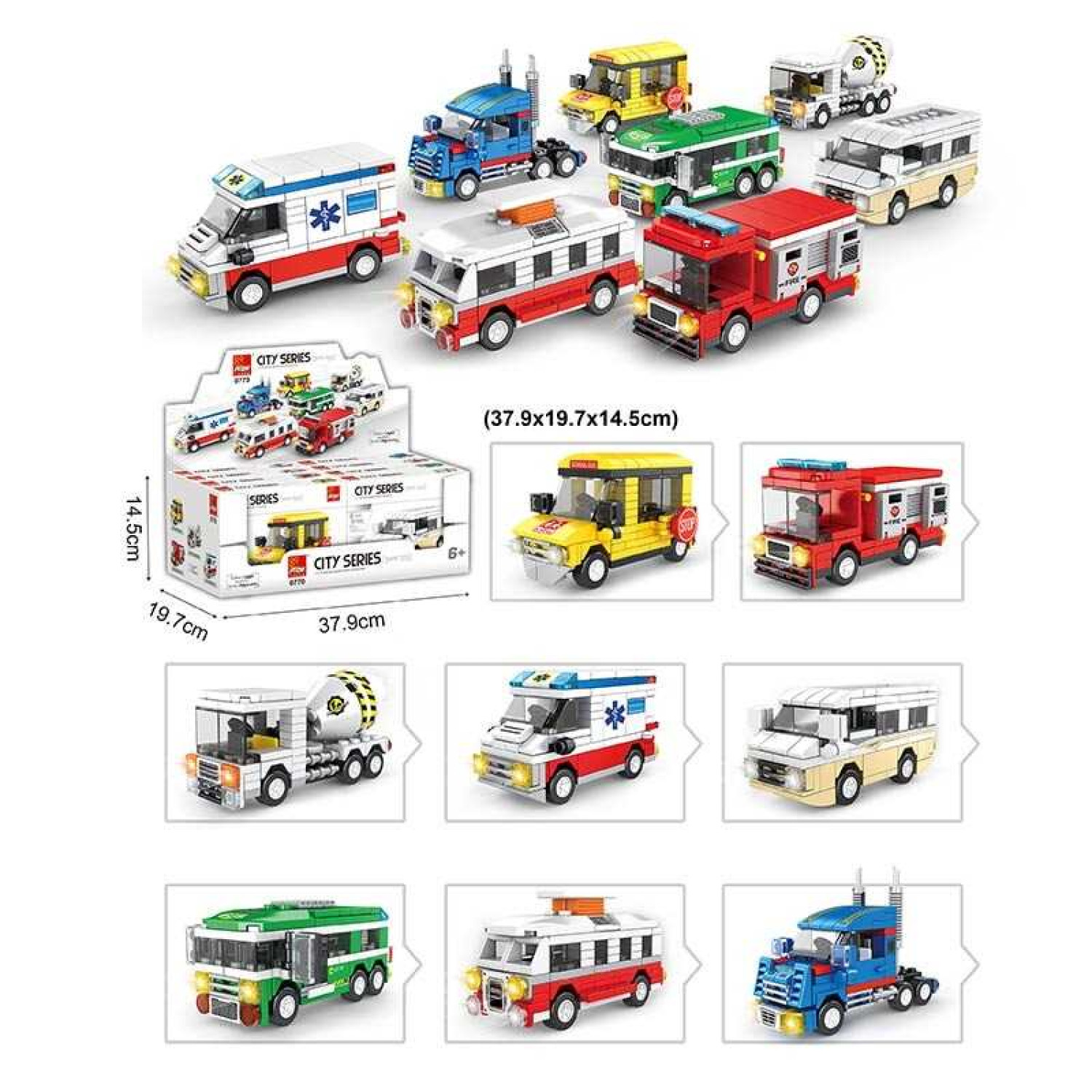 Середня кількість деталей - 95. Тип кріплення - пазовий. Розмір деталей - стандарт. Мінімальний вік - 6 років. Особливості: Конструктор представлений у форматі міської спецтехніки й транспорту. Набір дозволяє створити модельки машинок. У наборі з конструктором наявні наліпки для декорування зібраних фігурок. Ігровий набір чудово деталізований, кожна його деталь максимально опрацьована. У комплекті з конструктором представлена покрокова інструкція.