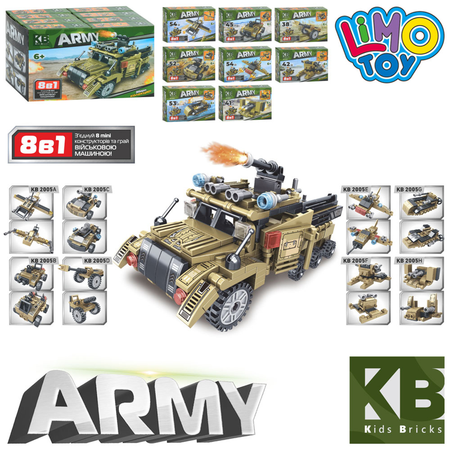 Конструктор військовий, транспорт/пушка, від 38дет, в кор-ці, 8в1, (8видів) /15/240/16шт в кор. 30-19,5-16,5см