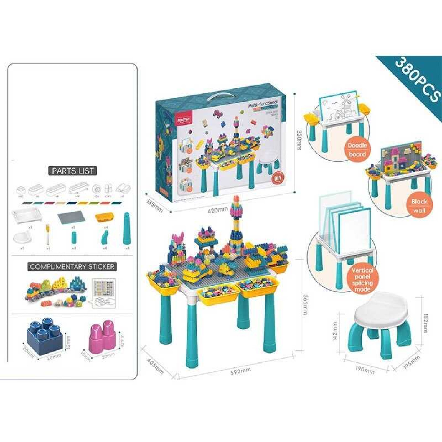 Столик з конструктором 380 дет. розмір столика: 59*40.5*36.5 см, стільчик, дошка для малювання, маркер “пиши-витирай”, в кор. /12/