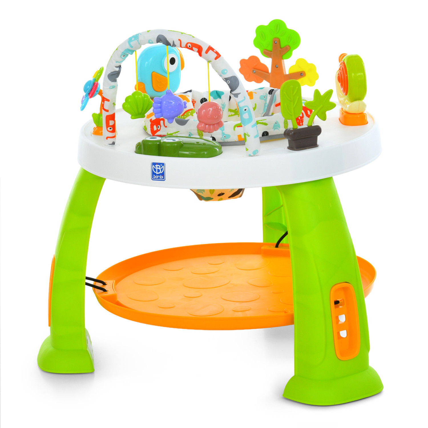 Розвиваючий центр-стрибунець M 6243-5 (1шт) 3в1 (столик-лего, обертове сидіння, стрибунець) музика, світло, дуга з іграшками, зелений