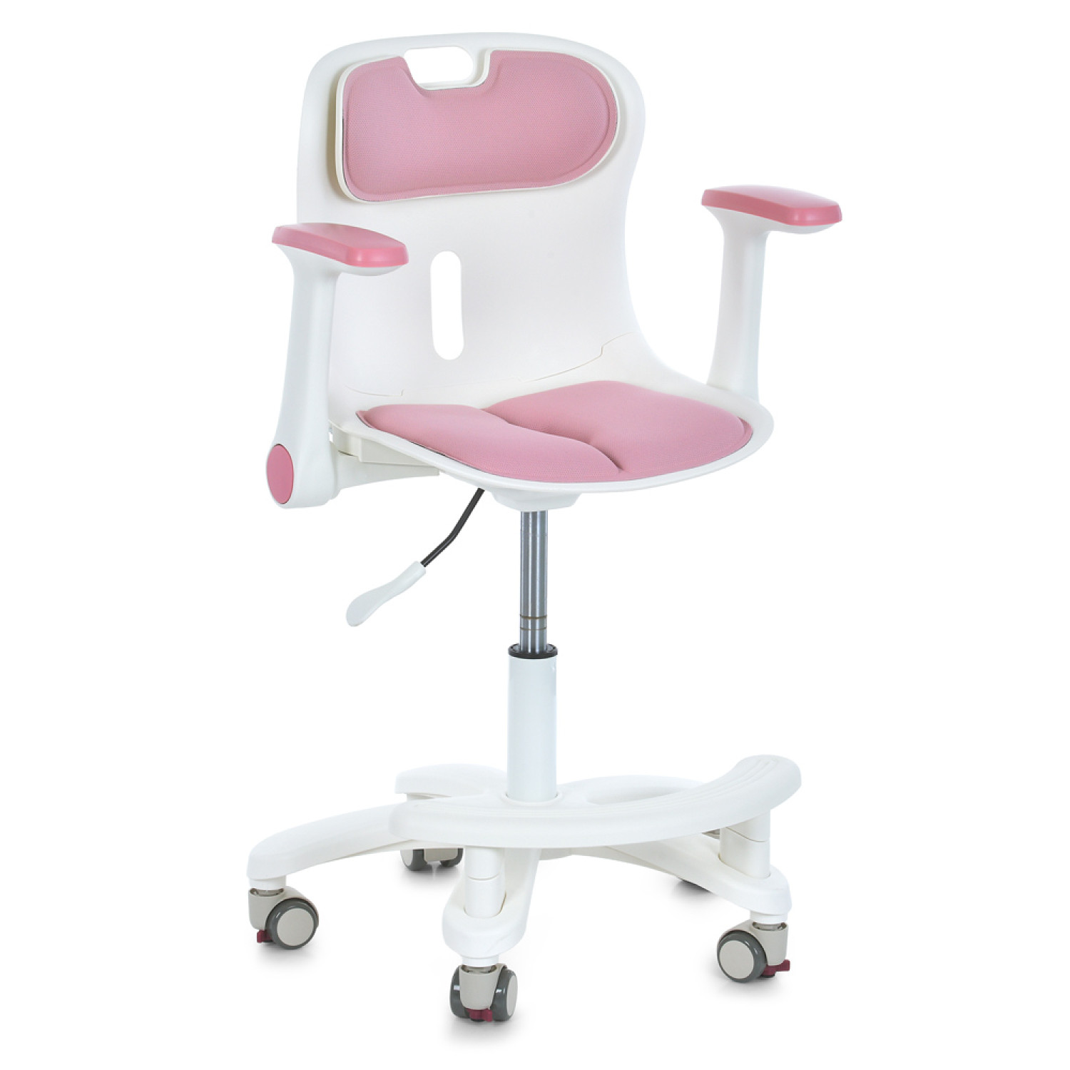 Дитяче крісло M 6151-8 (1шт) з підлокітником і підніжкою, блокування коліс, м'яке сидіння і спинка, регуляція висоти, рожевий
