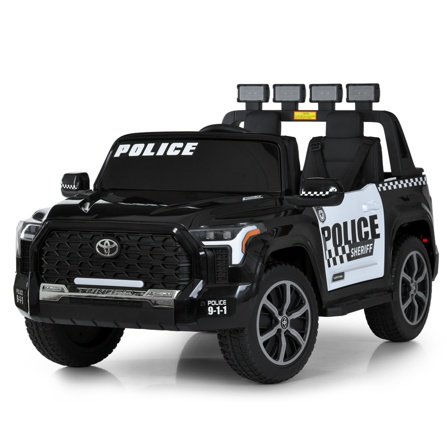 Ліцензійний електромобіль має оригінальний значок Toyota. Два мотори 2х200W/24V. Акумулятор 24V/5AH. Індикатор заряду батареї. Шкіряне сидіння. Відкриваються двері. М'які EVA колеса. Амортизатори. Зарядка 24V/1000mA, індикатор зарядки. Старт - кнопка, педаль газу. Плавний старт в звичайному режимі. Кількість швидкостей: в машині - 1 шт., на пульті - 3 шт. Максимальна швидкість - до 7 км/год. Рух вперед-назад. Світлові та звукові ефекти, світяться фари. Музика, звук при старті, регулятор гучності. Додаткові кнопки на панелі, USB, MP3, Bluetooth. Ремені безпеки. Максимальне навантаження - до 35 кг. Матеріал корпусу: міцний пластик. Пульт дистанційного керування 2,4G Bluetooth.