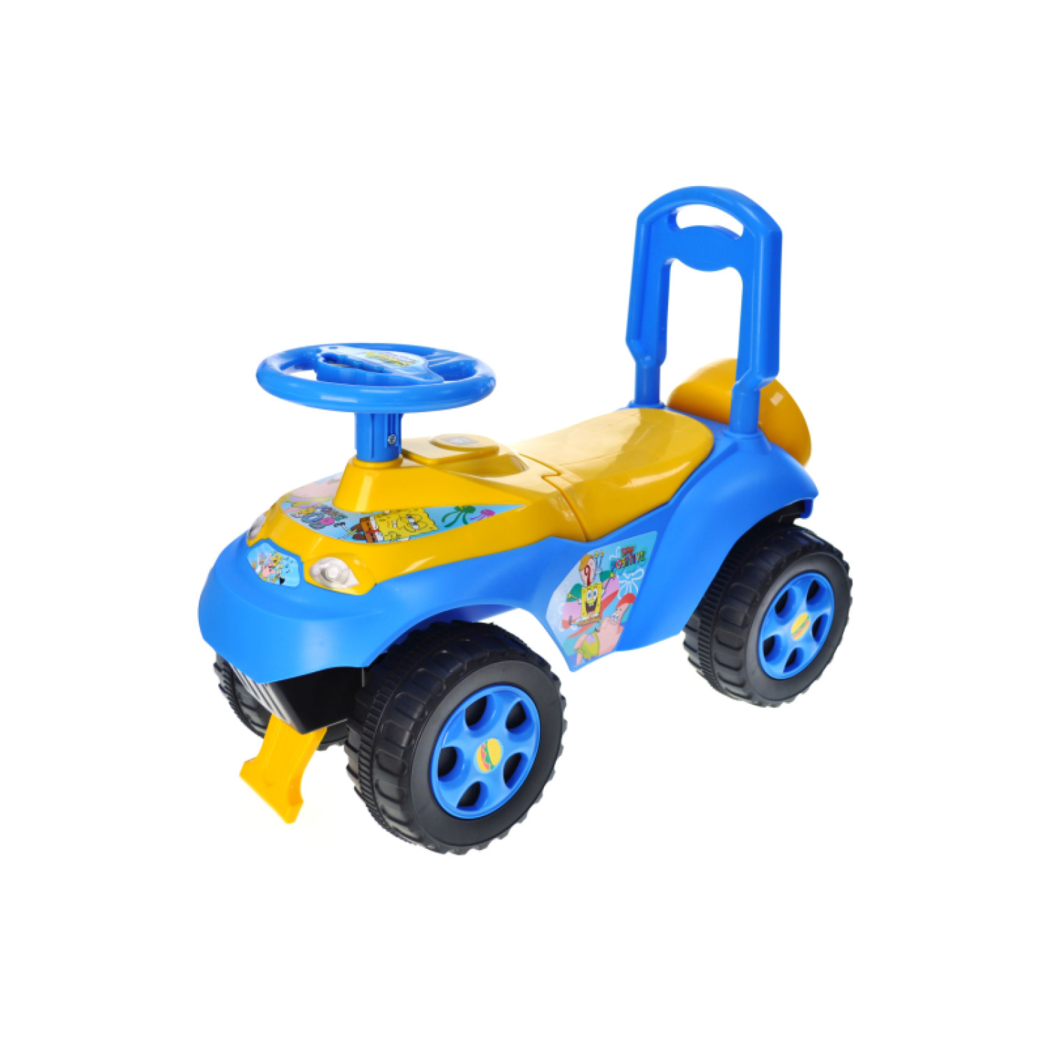 Стильний дитячий толокар із оформленням у кольорах улюбленого мультгероя - жовтого з блакитними акцентами, створений спеціально для малюків, які обожнюють SpongeBob. Конструкція з міцного пластику, широкі колеса та комфортне сидіння гарантують стабільність і безпеку під час гри. Дитина легко керує толокаром, відштовхуючись ніжками. Особливість моделі - яскраві наліпки з образом Губки Боба, які роблять гру ще захопливішою. Комплектація: корпус із сидінням і колесами, кермо, спинка. Довжина: 61 см. Висота власне машинки: 27 см. Висота з боку руля: 38 см. Висота зі спинкою: 47 см. Ширина: 30 см.