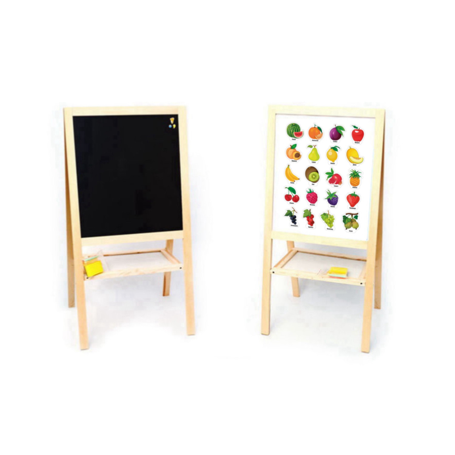 Мольберт двохсторонній, магнітний "Фрукти і ягоди" з поличкою розмір дошки 47см*55см /1/
