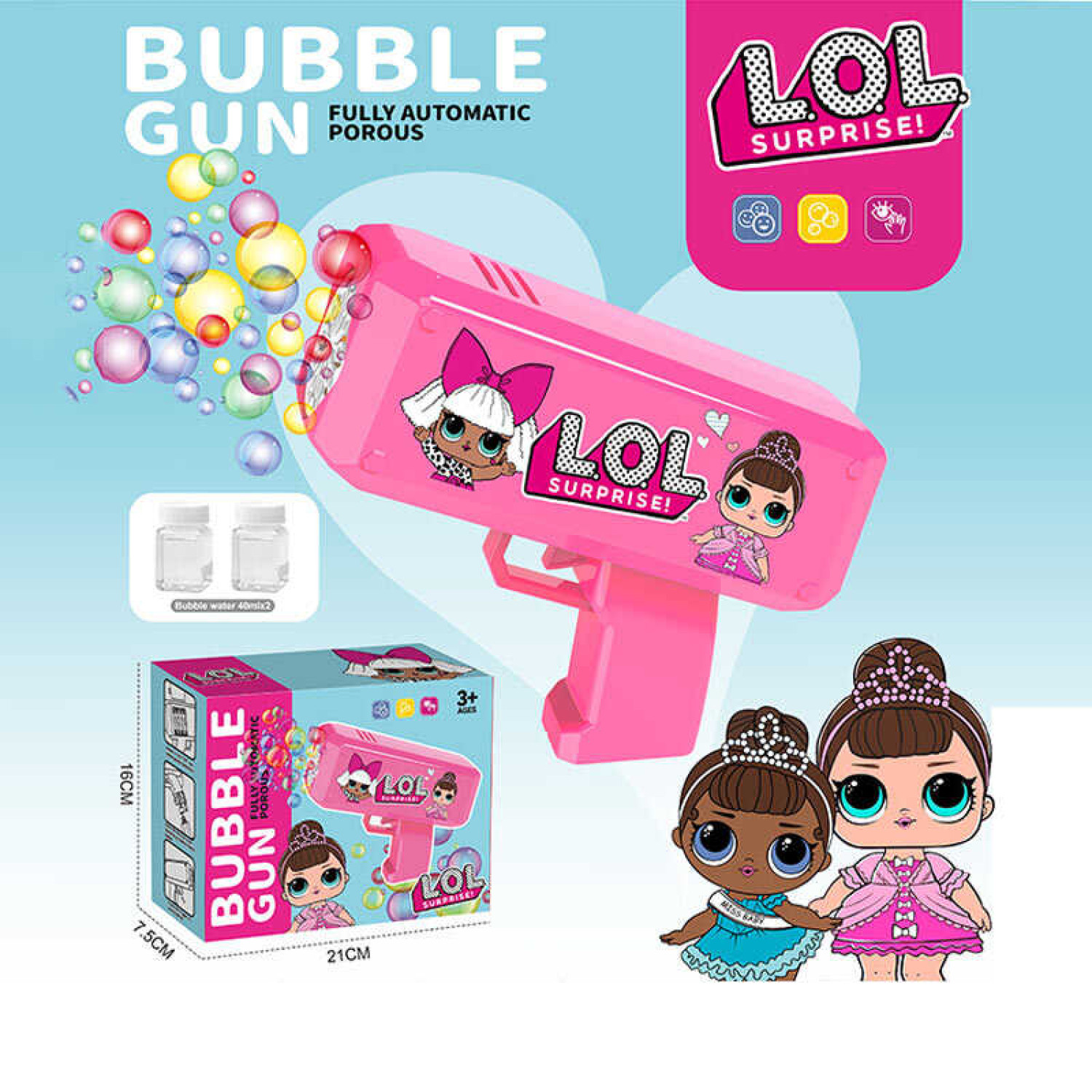 Пістолет з мильними бульбашками автоматичне видування бульбашок, на батарейках, 2 пляшечки з мильним розчином, в кор. /60/