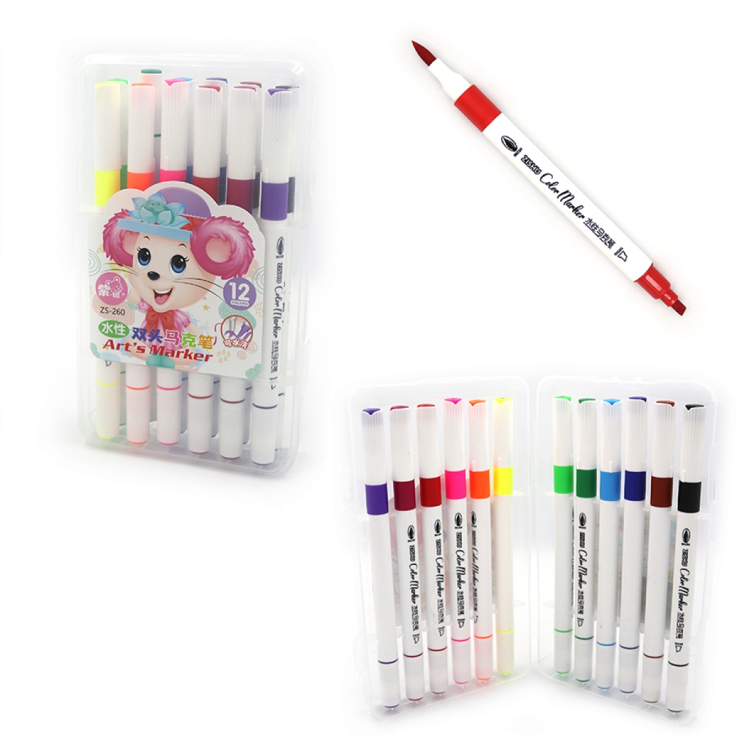 Особливості: Набір скетч маркерів двусторонніх. 12 маркерів. 12 кольорів. Розмір маркера 165 мм. З одної сторони пензлик, з іншої скошений наконечник. Упаковка: пластиковий бокс