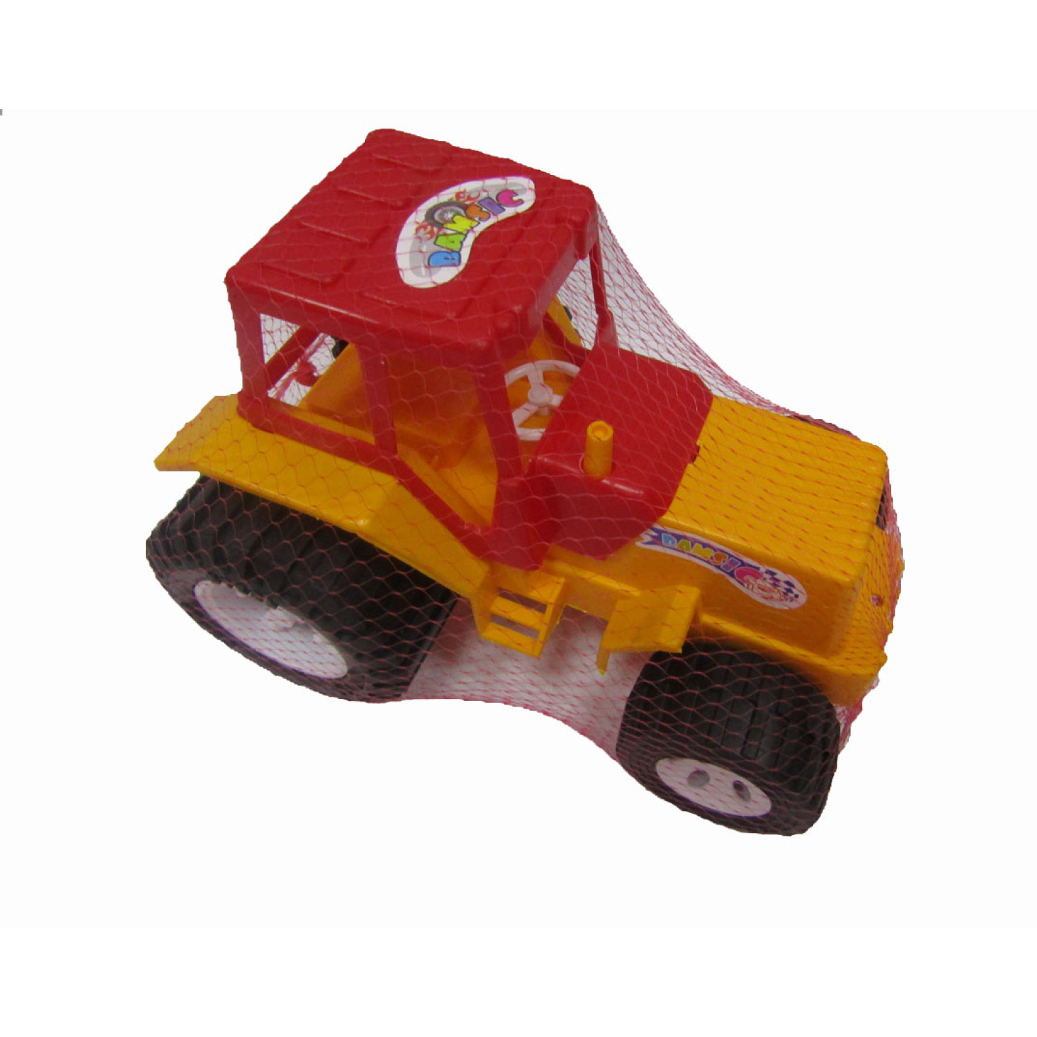Трактор из пластика. Двери в тракторе не открываются, руль не двигается. Упаковка: сетка.