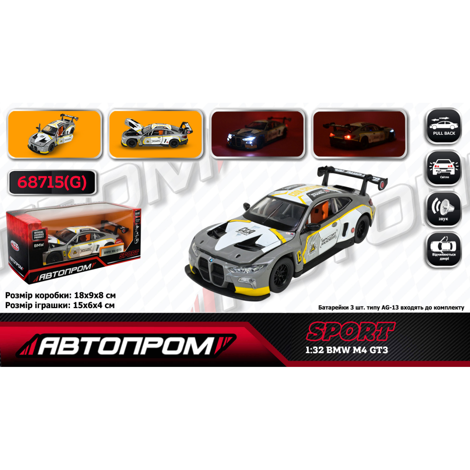 Машина мет. АВТОПРОМ 1:32 "BMW M4 GT3", батар, світ., звук, відкр.двері, кор.18*9*8 см /48-2/