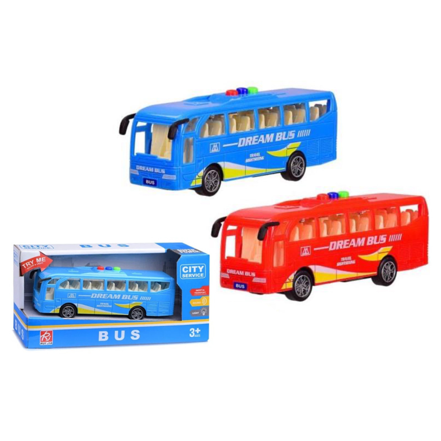 Іграшковий автобус на інерції. Видає звуки, світяться фари, грає музика. Пластиковий корпус. Працює від батарейок – не йдуть у комплекті. Розмір у коробці - 22*7,5*11 см.