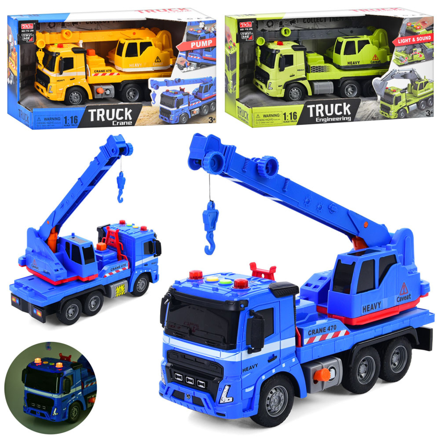 Будтехніка кран 25см, 1:16, інерція, рухомі деталі, 3 кольори, звук, світло, на бат-ці(табл), в кор-ці 32,5-17,5-13см /24/