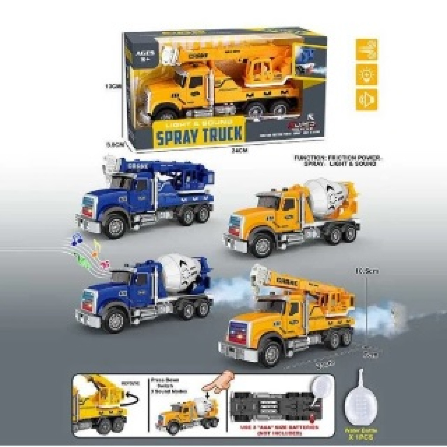 Машина спецтехніка інерційна озвучена, зі світлом, з парою, в кор.24x9,5x13 см YG Toys /84/