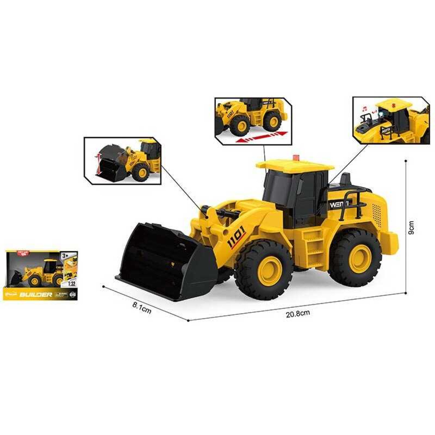 Спецтехніка на батарейках, масштаб 1:20, звук, світло, інерція, рухомий ківш, прогумовані колеса, в кор. /48/