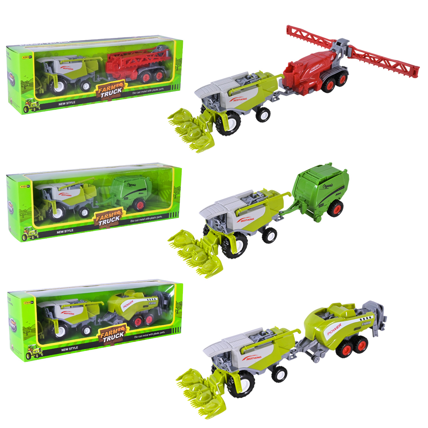 Комбайн 3 види, причіп, розмір: 25.5х5.8х6 см, металопластик, інерція, рухомі елементи, в кор., МІКС ВИДІВ /144-2/