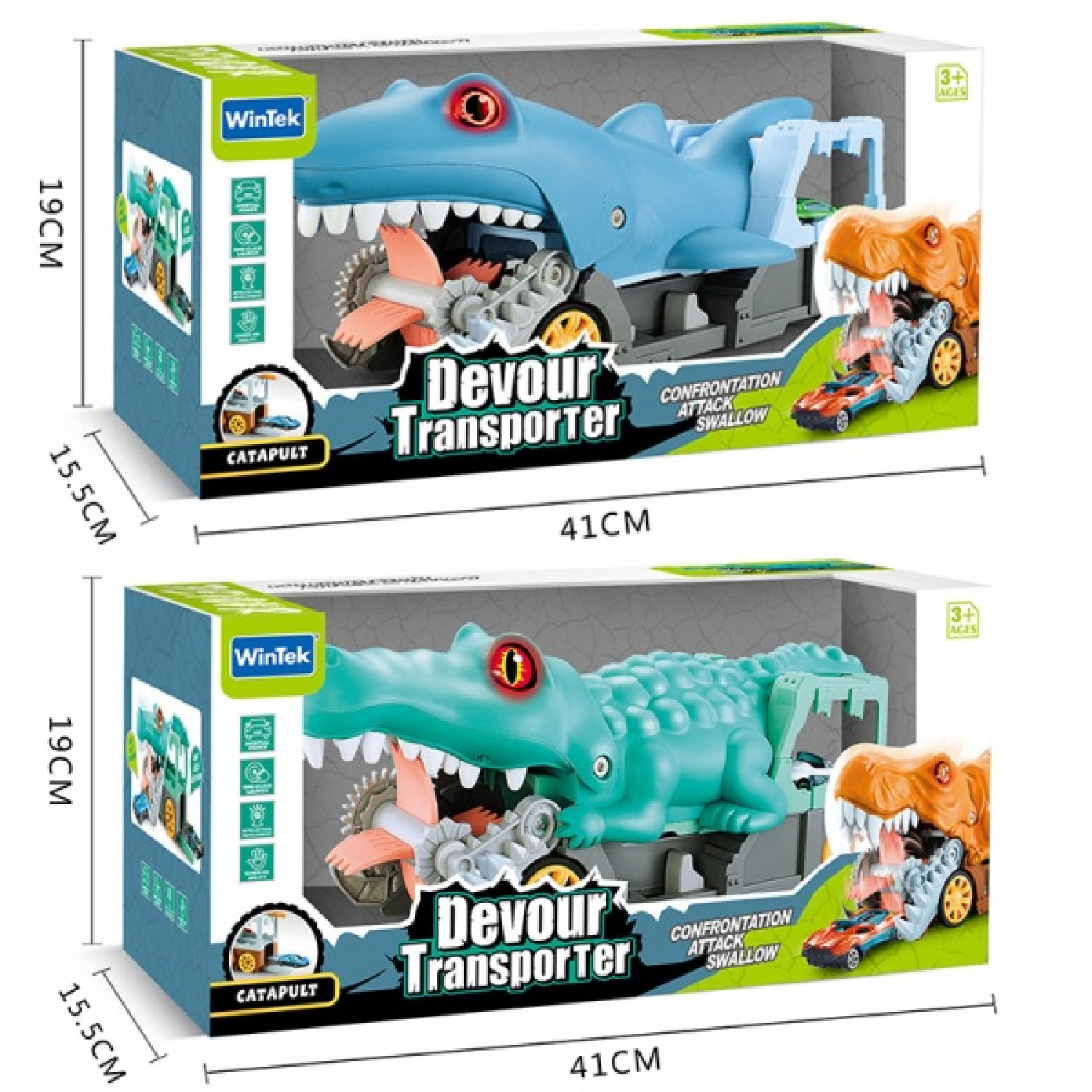Трейлер-монстр-трек E7016/7017 акула/крокодил з метал.машинками(2шт.) батар.муз.світ.кор.41*15,5*19