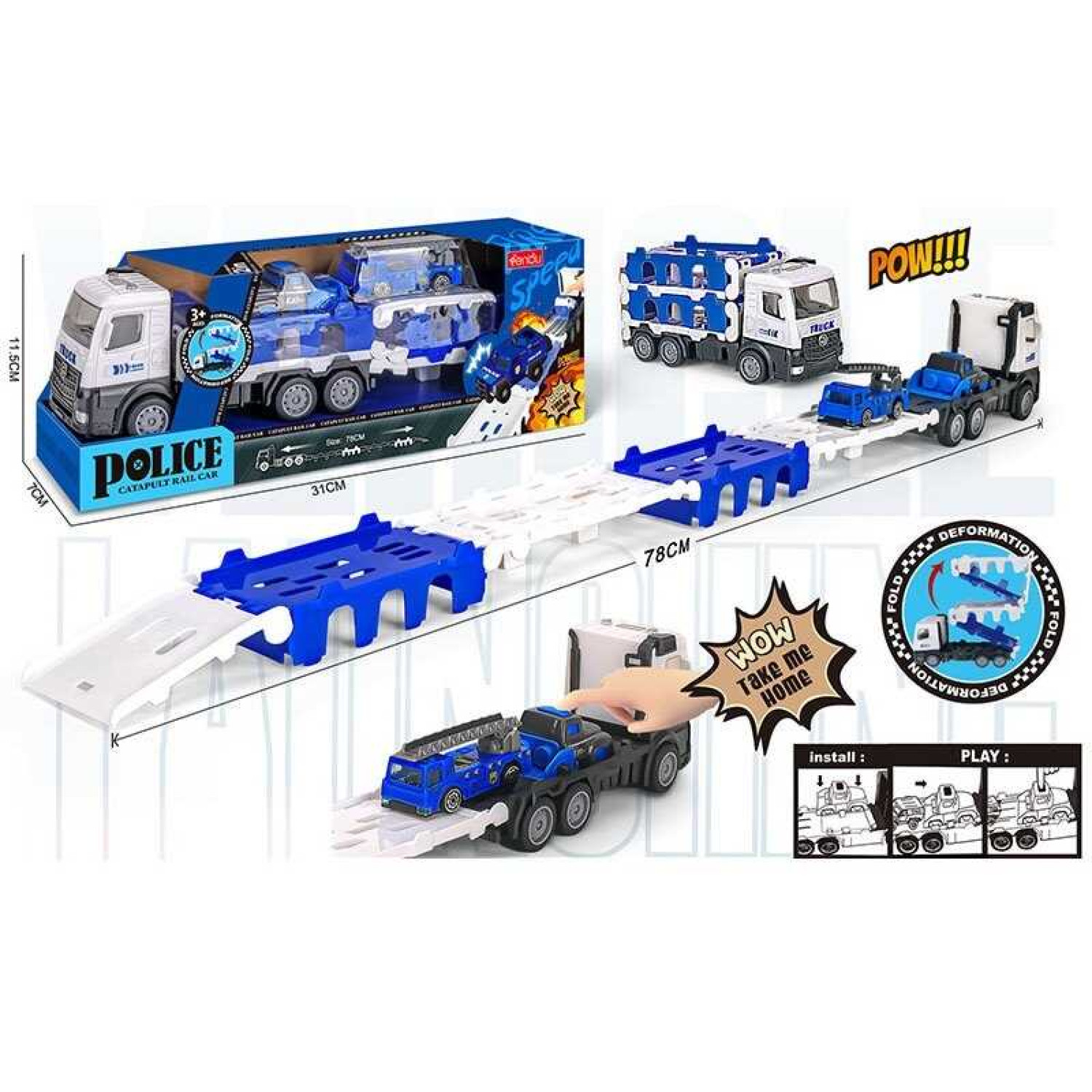 Поліцейський трейлер-трек - це справжній центр швидкісних пригод! Він розкладається у довгу трасу завдовжки 78 см та має інерційний механізм. У комплекті є машинка і механічний запускач, який додає грі динаміки. Міцна конструкція та гумові шини забезпечують надійність і плавний рух під час перегонів. Цей трек подарує дитині безліч емоцій і стане улюбленою іграшкою у колекції. Особливості: - трейлер-трек - виконано у вигляді поліцейського трейлера - довжина машинки: 78 см - до набору додано 1 машинку - трейлер має інерційний механізм - трек має гумові шини - 1 механічний запускач - виконано з пластику. Розмір коробки: 31х11,5х7см.