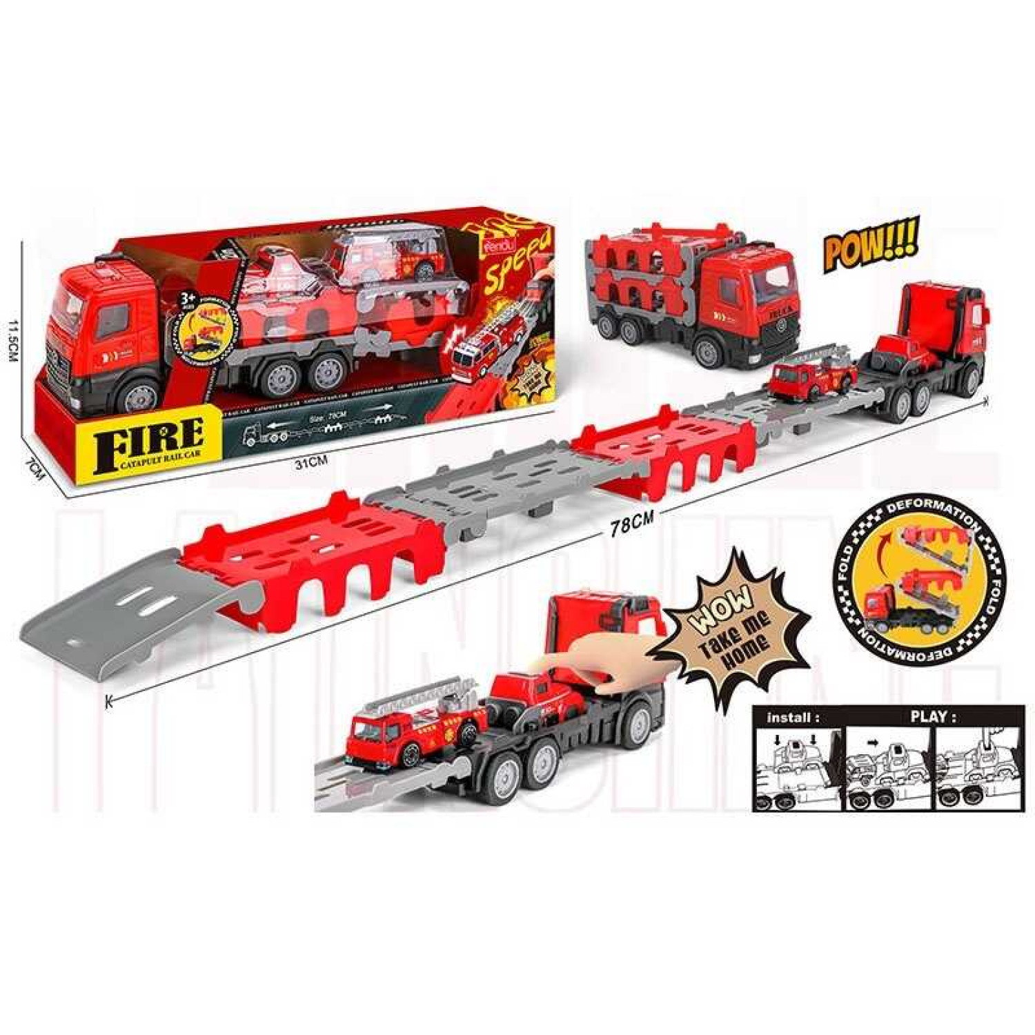 Пожежний трейлер-трек - це справжній центр швидкісних пригод! Він розкладається у довгу трасу завдовжки 78 см та має інерційний механізм. У комплекті є машинка і механічний запускач, який додає грі динаміки. Міцна конструкція та гумові шини забезпечують надійність і плавний рух під час перегонів. Цей трек подарує дитині безліч емоцій і стане улюбленою іграшкою у колекції. Особливості: - трейлер-трек - виконано у вигляді пожежного трейлера - довжина машинки: 78 см - до набору додано 1 машинку - трейлер має інерційний механізм - трек має гумові шини - 1 механічний запускач - виконано з пластику. Розмір коробки: 31х11,5х7см.