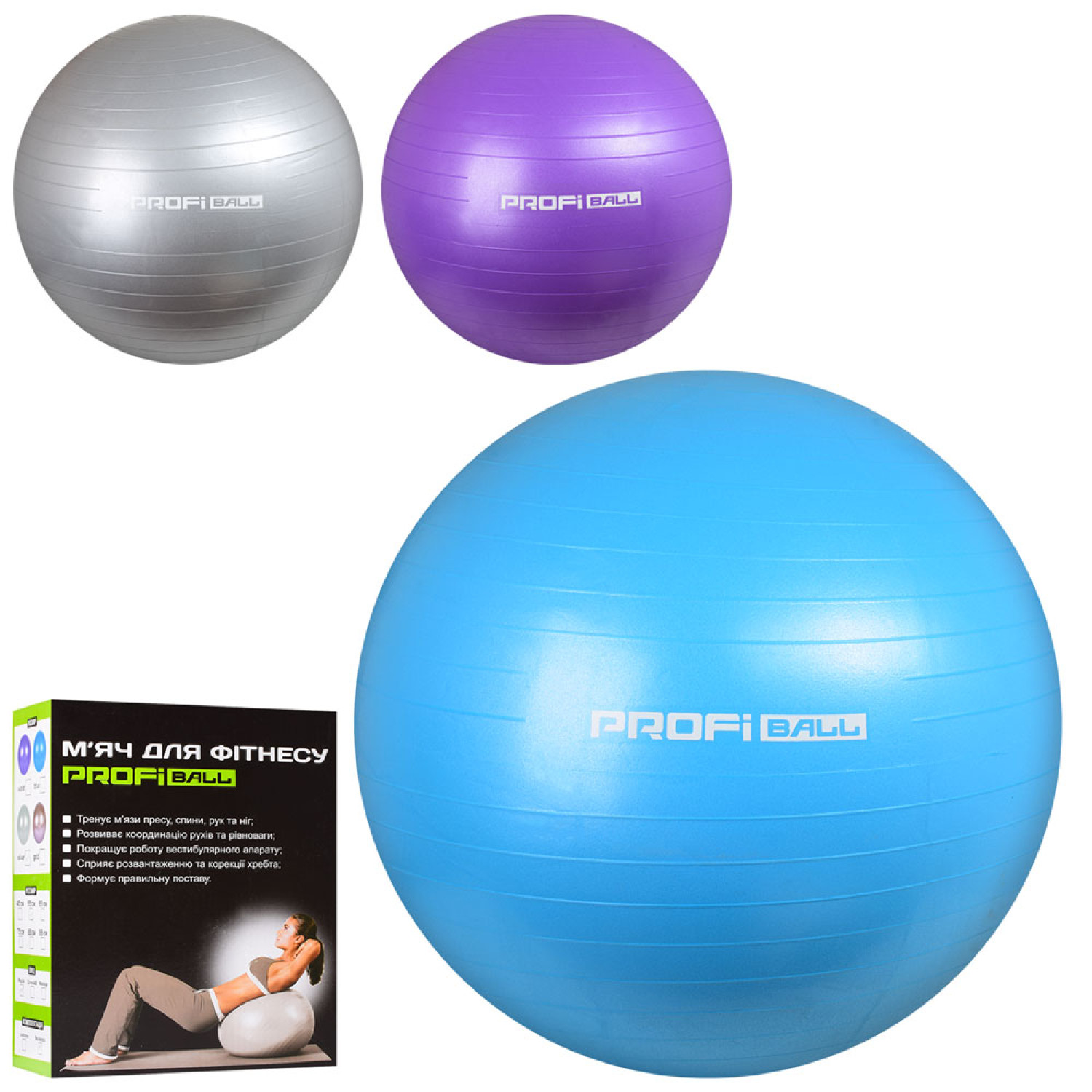 М'яч для фітнесу-55см Фітбол, 700г, 3 кольори,кор,17,5-23-8см /12/