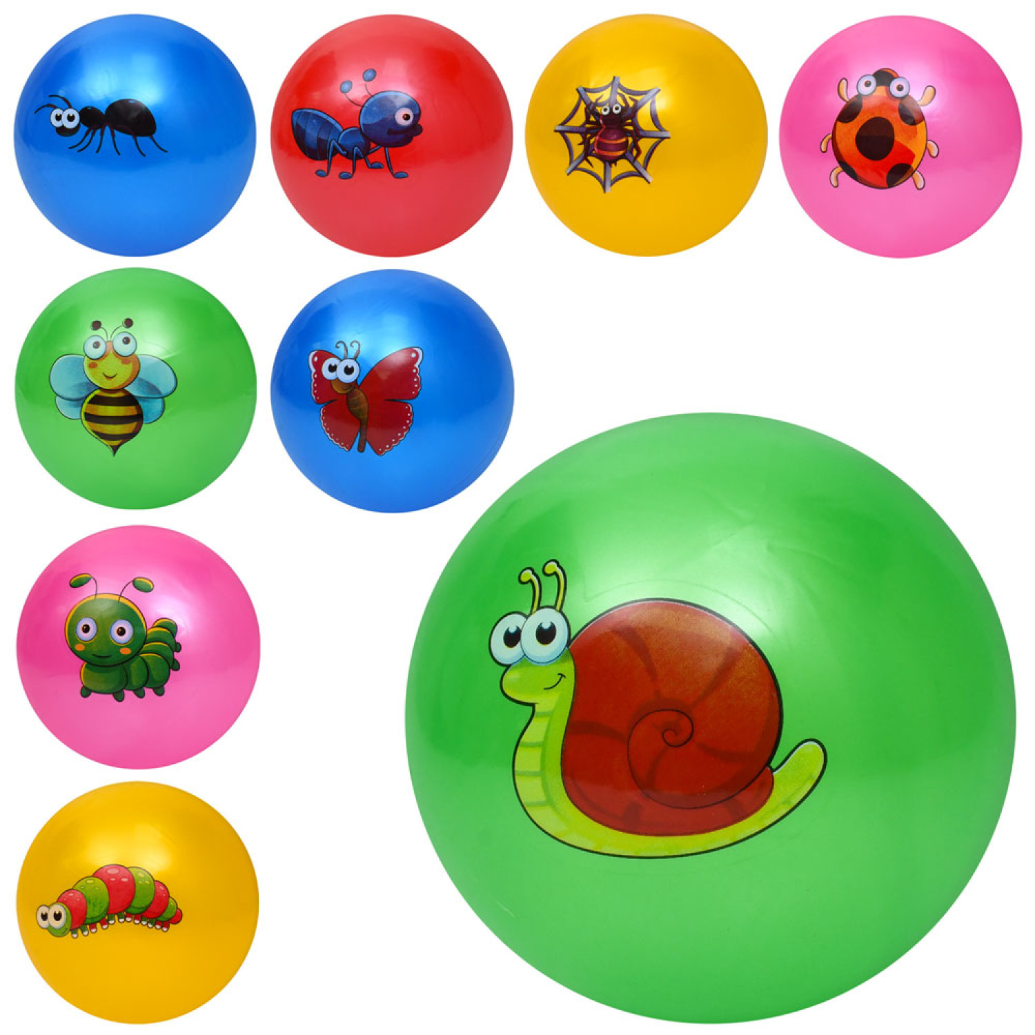 М'яч дитячий 9 дюймів, 60г, принт-комаха, мікс видів/5 кольорів /120/