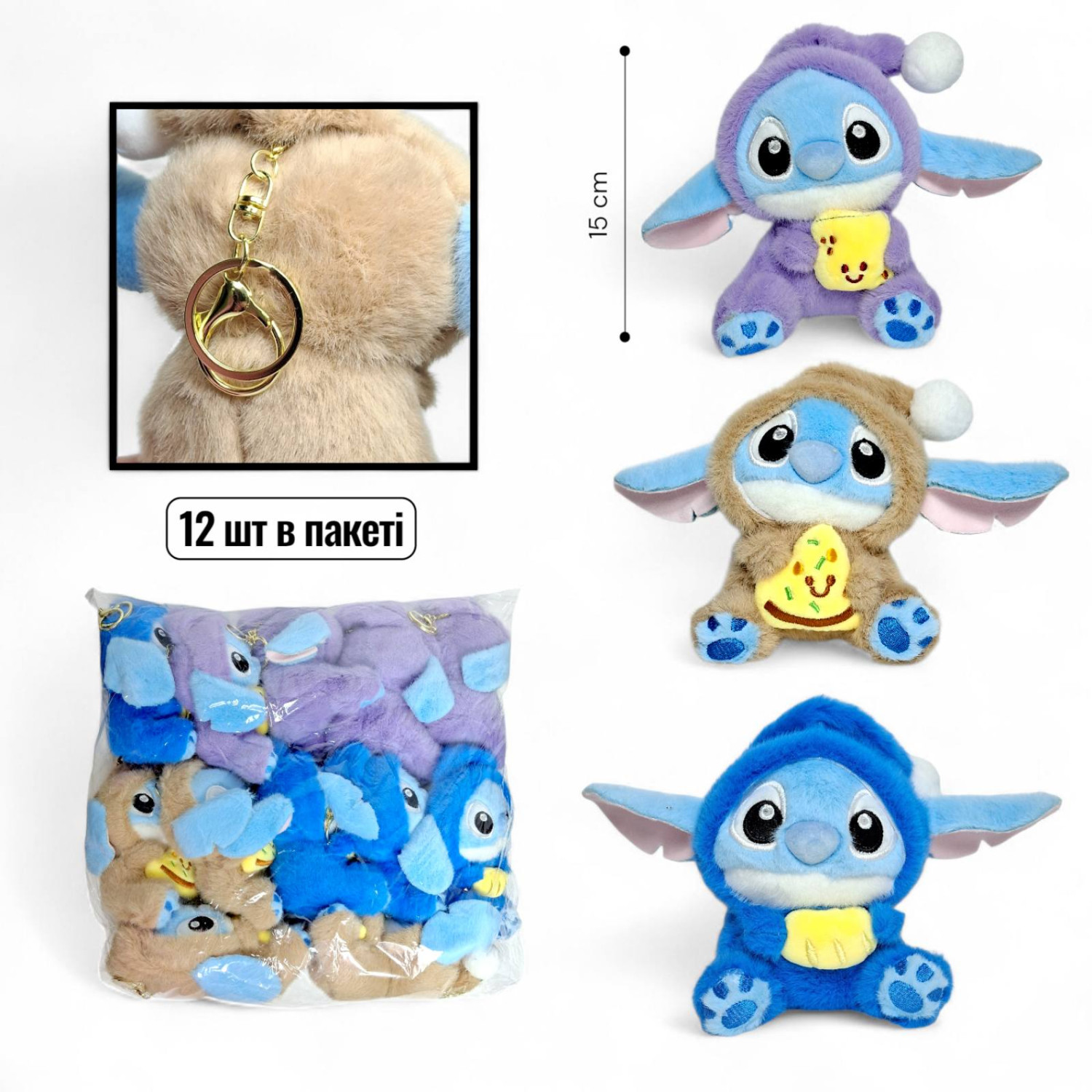 Брелок стіч з ковпаком 15см /6/72/12шт в п/е