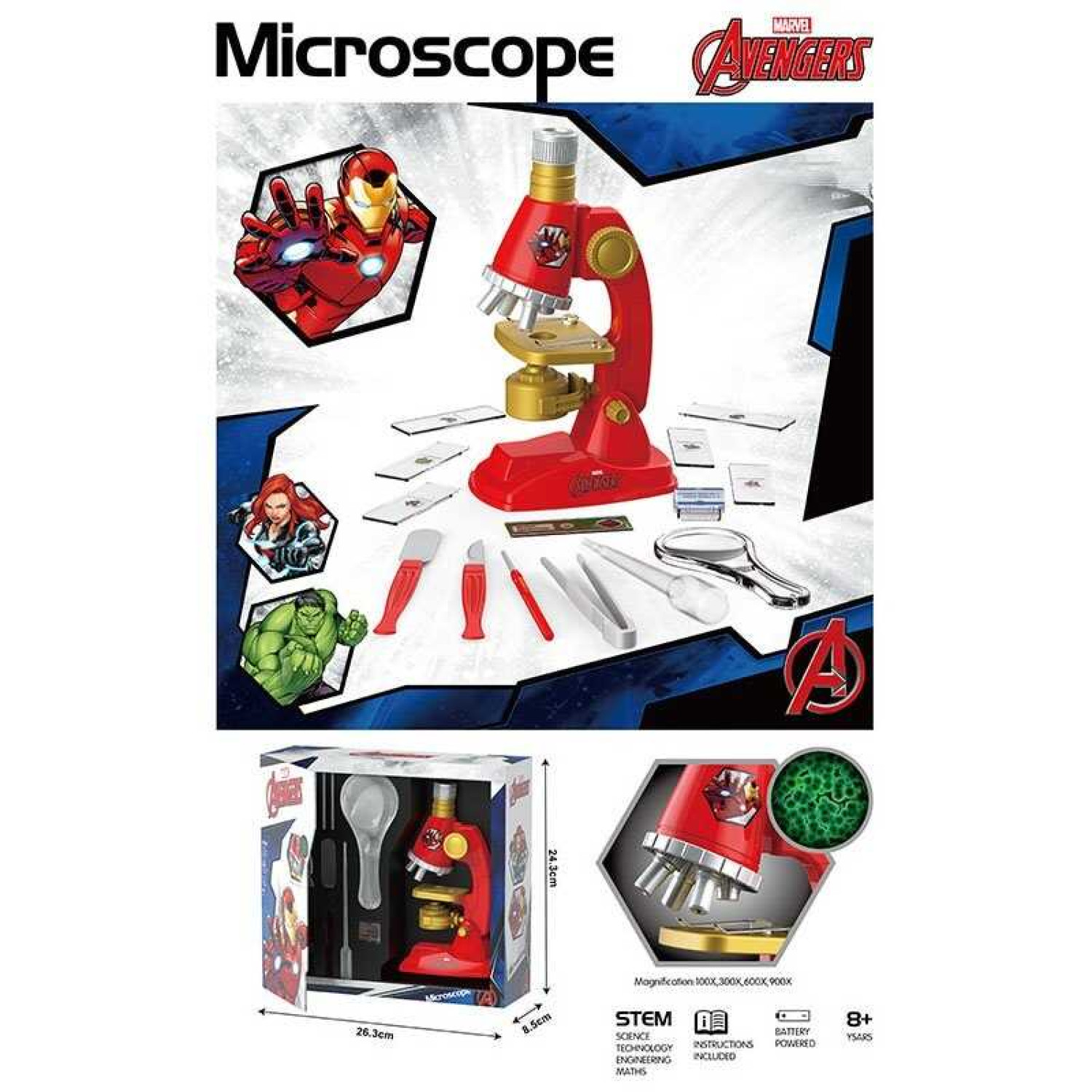 Мікроскоп герой, збільшення 100х, 300х, 600х та 900х, інструменти, лупа, скельця, підсвічування, на батарейках, в кор. /48/